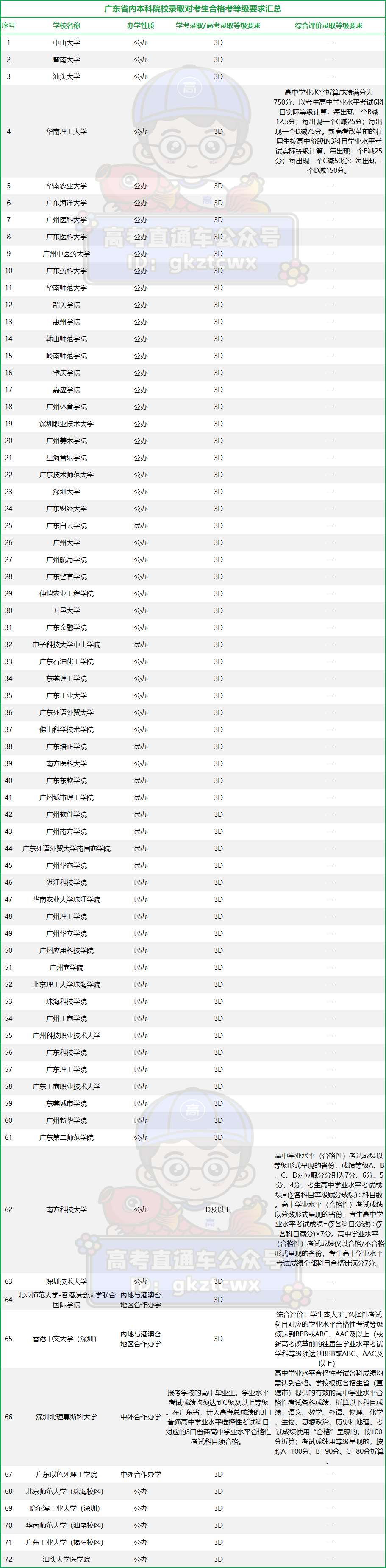 夏季高考呢?按照广东新高考方案,合格考各科成绩均合格(即达到D级或D级以上)是应届高中生参加录取的必要条件,高校还可以在此要求的基础上提更高要求。