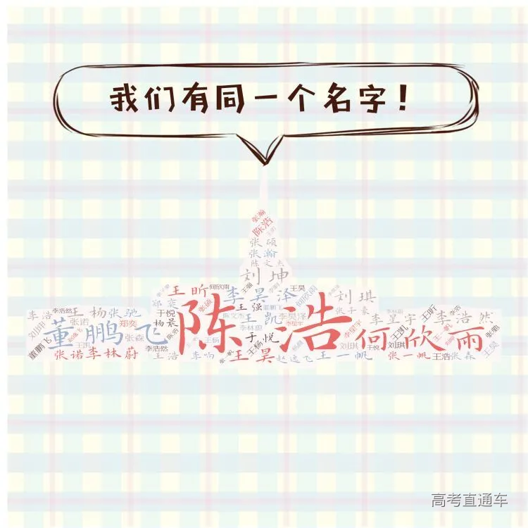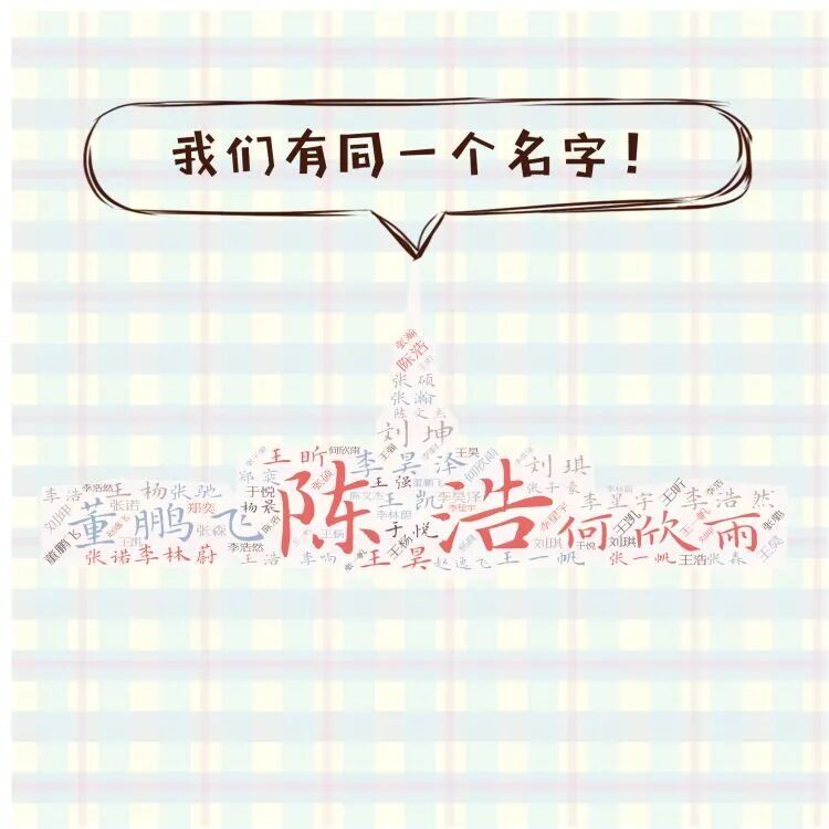 今年的新生中有30个名字被2位以上的同学共有,其中叫“陈浩”的同学最多,有5位。如果你在哈工大的校园里大喊自己的名字,说不定就能找到另一个自己。