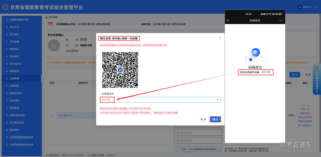甘肃省普通高等学校招生体艺类高职(专科)批I段第一次征集志愿工作即将开始,征集志愿的时间:8月10日20:00至8月11日10:00,现将征集志愿操作指南告知如下,请参加征集志愿的考生务必在规定时间内填报志愿。
