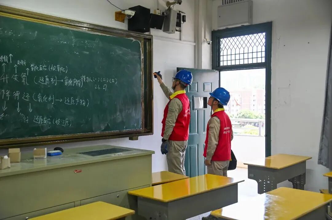 相关执法人员在工地巡查 福建省生态环境保护综合执法总队实施“绿色护考”,对重点管控区域、重要时段,严格实施执法监管,依法从快查处噪声超标等违法行为。在重要时段,即高考前一周至中考结束(5月30日—6月21日),采取日常巡查与夜间突击检查相结合的方式加大巡查、监测力度;6月7日—9日、6月19日—21日考试期间,将实行轮班巡查制度,对考点、考生集中食宿点等噪声敏感区域每日至少开展2次以上巡查,外语听力考试期间将重点盯防,确保考试环境安静。 执法人员在学校食堂排查隐患 全省市场监管部门以考点学校食堂、校外供餐单位及校园周边食品经营者为重点对象,聚焦肉制品、乳制品等重点品种,紧盯食品原材料进货查验、加工制作、餐具消毒等重点环节,全面排查隐患。 输电运维人员对考点用电设备进行“体检” 为了确保今年高考期间的安全可靠供电,国网福建电力提前介入,主动与教育部门、学校对接联系,了解高考点情况及其供电需求,制定高考保电工作方案,“一考点一预案”落实各项保电组织、技术措施及应急供电策略,筑牢考前排查、临考复查、考中保障的“三道屏障”,确保考试期间的供电设备安全运行和电网可靠供电。