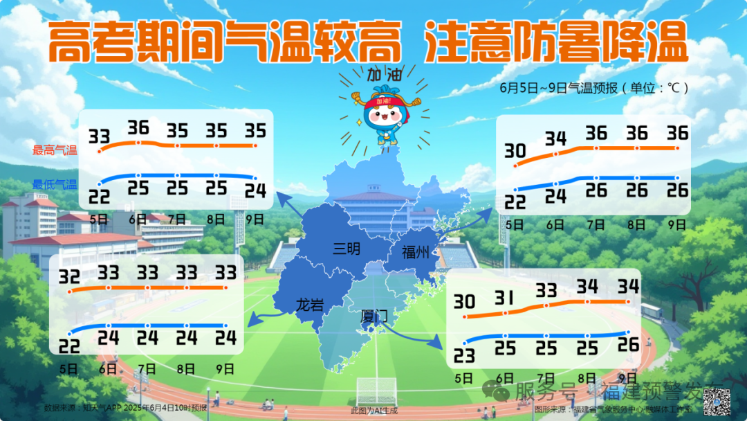 连日来,省教育厅、教育考试院会同省招委会成员单位进一步强化部门协同,明确职责分工,细化工作要求,推动各项工作落实落地。各考点准备工作已就绪。 平潭考区城关中学考点 记者走访平潭综合实验区三个考点看到,现场帐篷搭设完毕,温馨提醒、考场示意图等信息均已张贴到位。平潭一中(岚城校区)考点内搭设的帐篷提供热水、凉水、纸巾、一次性杯子等物资;针对特殊考生,安保人员和监考老师也根据详细注意事项逐一落实;雨天应急预案也提前演练。据了解,考试期间,党员志愿者将在考点门口及各路口进行引导,帮助考生快速找到考场。 福建省气象局递进式提供高考期间逐日全省及各县市城区天气预报,以及英语听力考试期间雷电预报;考生还可在“知天气”智慧移动服务端高考微网页查询考点逐小时天气实况和预报,及时了解高考天气,并获得防护提示。福建省气象局还联合交通部门发布交通气象风险预警,服务考生出行调度。