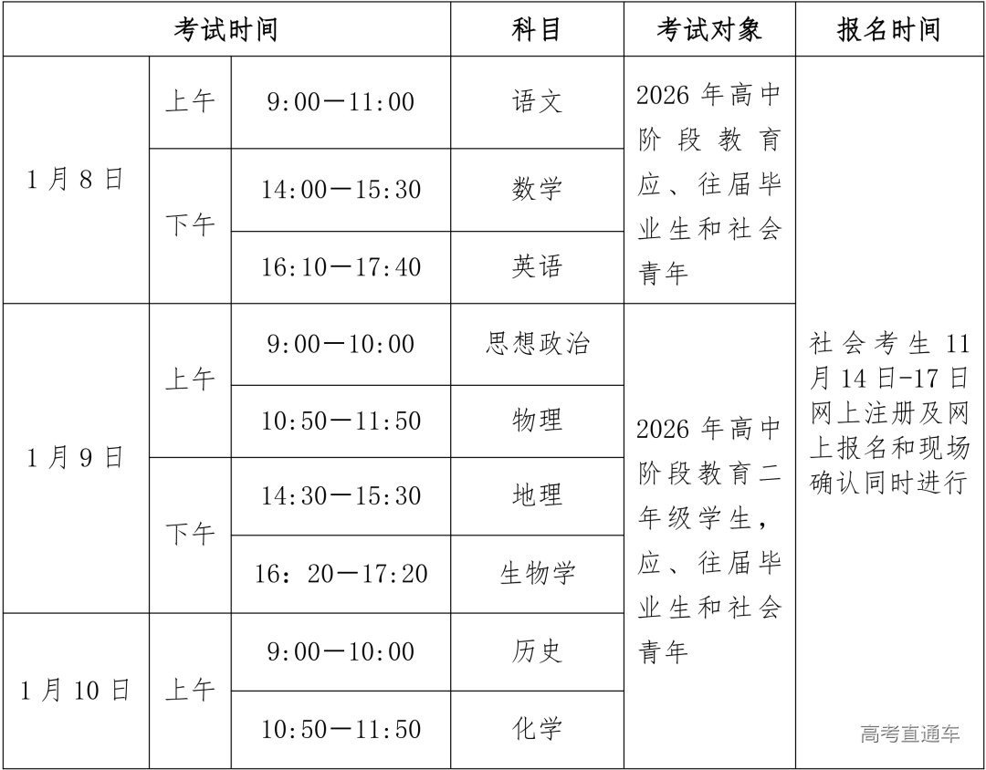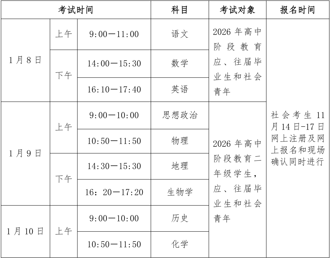 根据《关于做好2026年第一次广东省普通高中学业水平合格性考试报名工作的通知》(粤考院函〔2025〕144号)精神,为方便我市社会考生顺利报名,现将有关事项通知如下: