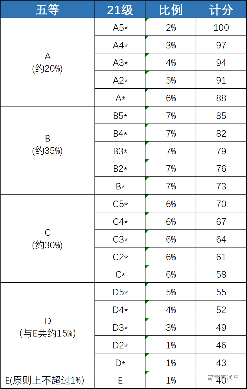 根据规则,选考排名前2%的考生,折算后对应的分值为100分;排名2%-5%的考生,折算成97分,以此类推。举个极端的例子,高考交白卷,也有40分。