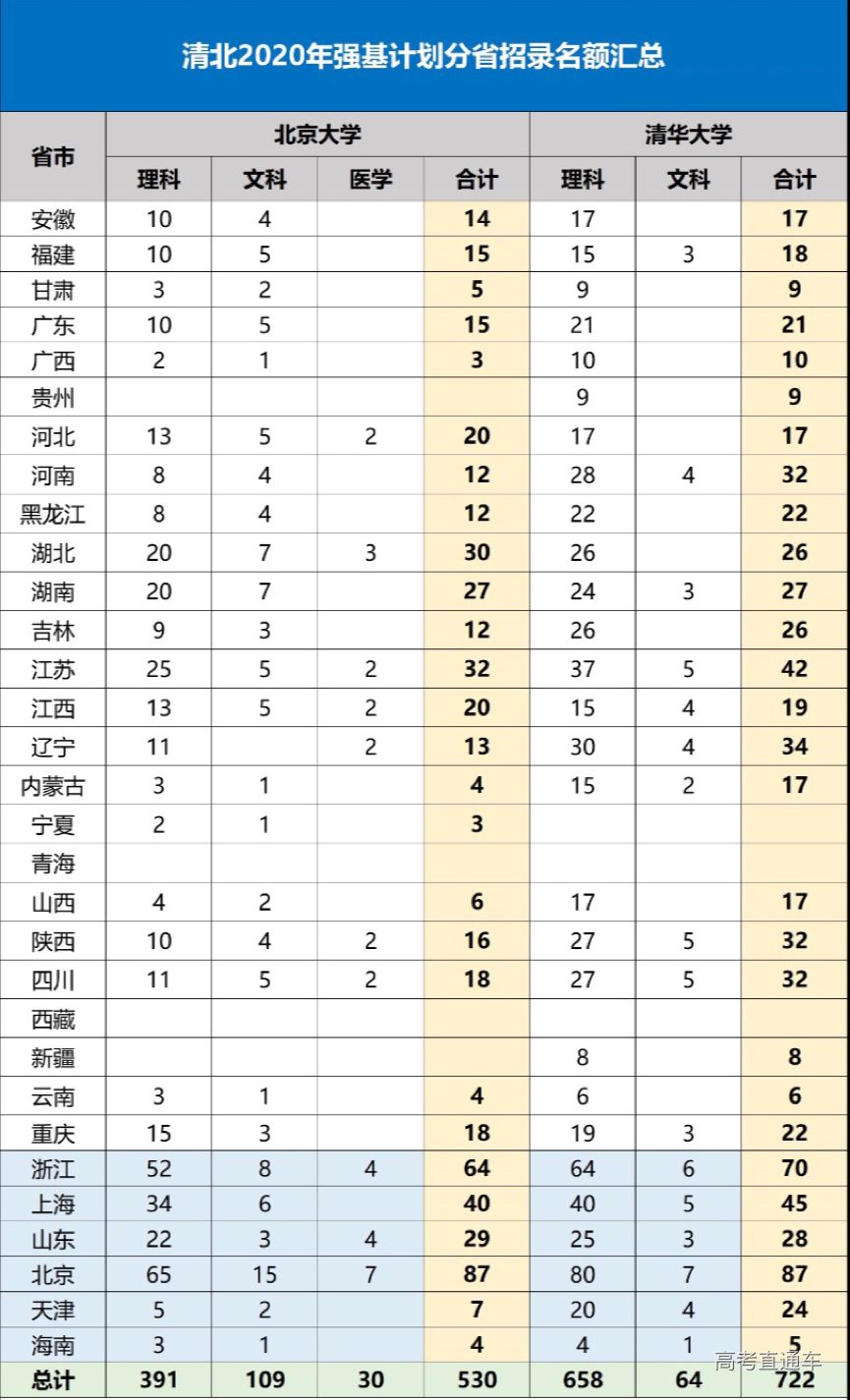 从上图可以看出,2020年,清北的总录取人数中,与裸分录取比例相当的,是今年新推出的强基计划。