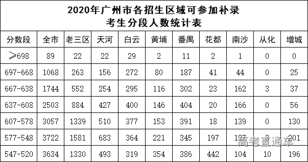 附件 1.2020年广州市普通高中学校补录计划 2.2020年广州市各招生区域可参加补录考生分段人数统计表