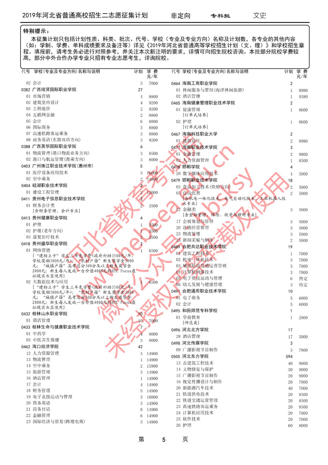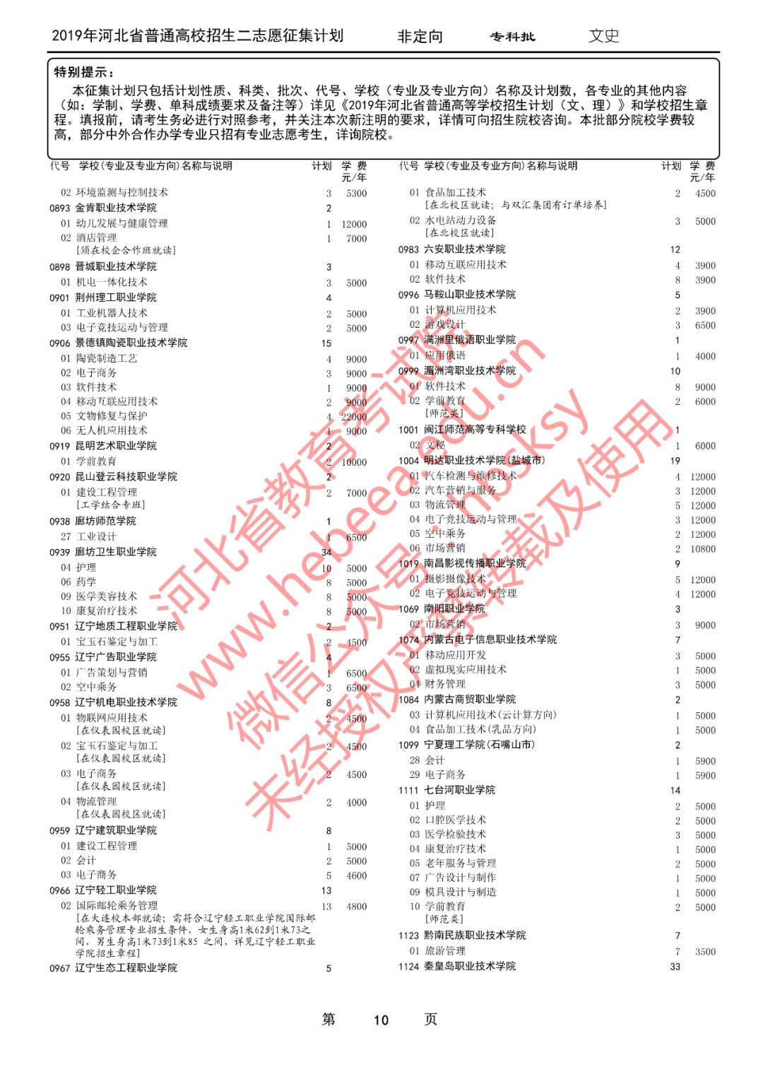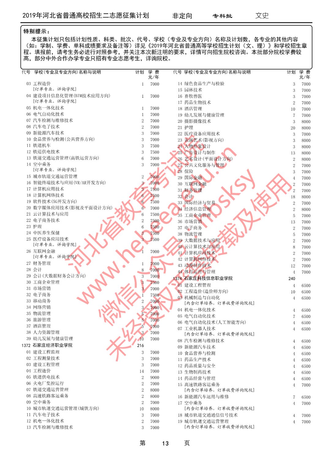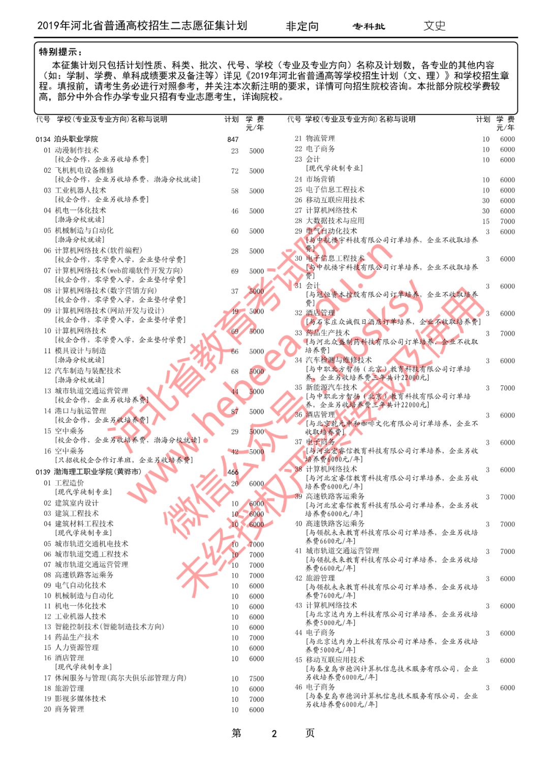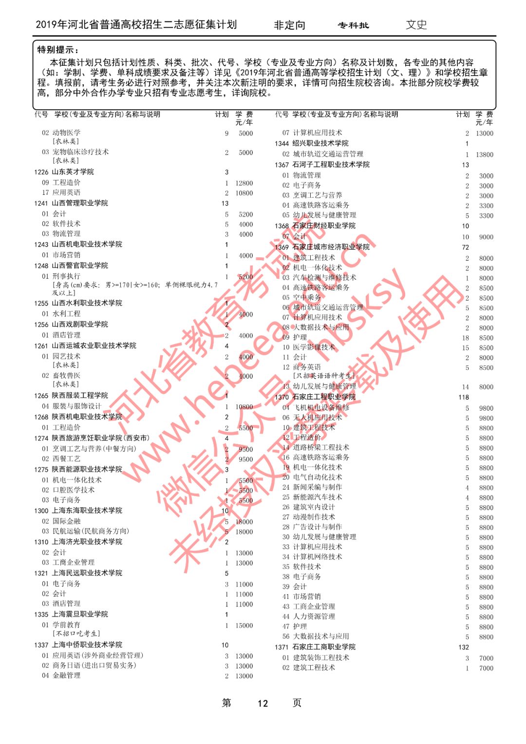 特别提醒:本征集计划只包括计划性质、科类、批次、代号、学校(专业及专业方向)名称及计划数,各专业的其他内容(如:学制、学费、单科成绩要求及备注等)详见《2019年河北省普通高等学校招生计划(文、理)》和学校招生章程。填报前,请考生务必进行对照参考,并关注本次新注明的要求,详情可向招生院校咨询。