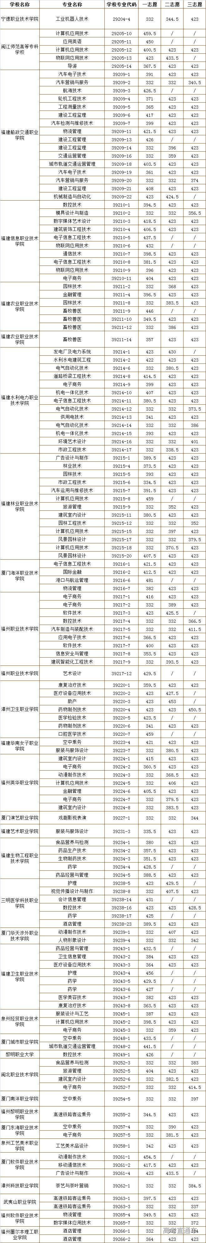 其余第二批五年制高职院校(专业)在五年制高职最低投档控制线(332分)上均未完成招生计划。生源不足的五年制高职体育、艺术专业,经院校申请并报省教育厅同意,投档线最低可降至235分,于明天(7月28日)继续投档。