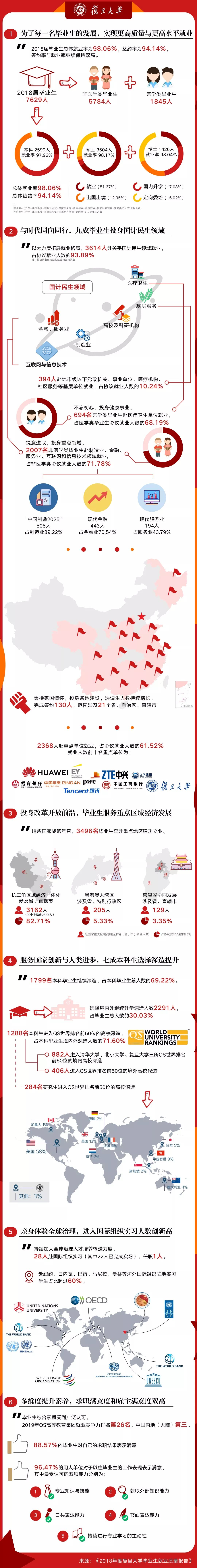 1月10日,《2018年度复旦大学毕业生就业质量报告》正式发布。报告对复旦大学2018届毕业生就业基本情况、毕业去向、就业评价及反馈等多个方面进行了统计分析和说明。