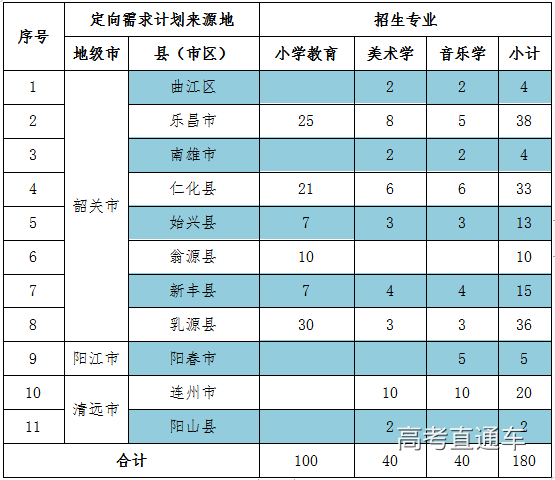 根据《广东省教育厅 中共广东省委机构编制委员会办公室 广东省财政厅 广东省人力资源和社会保障厅关于开展2019年公费定向培养粤东粤西粤北地区中小学教师试点工作的通知》(粤教师函〔2019〕7号)文件精神,2019年我校继续承担培养公费定向培养粤东粤西粤北地区中小学教师培养专业为小学教育、美术学、音乐学三个本科专业。