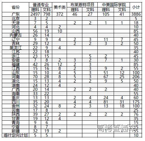 除广东之外,计划较多省份:河南206、四川175、山东100、贵州100、山西85、福建85、陕西76,其他省份具体招生计划请查看下表,均以生源省公布的专业目录为准。