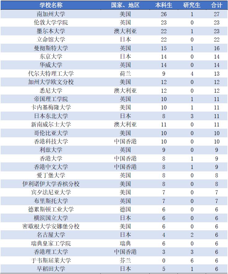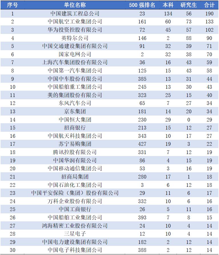 招聘我校2018届毕业生人数TOP30的世界五百强企业名单