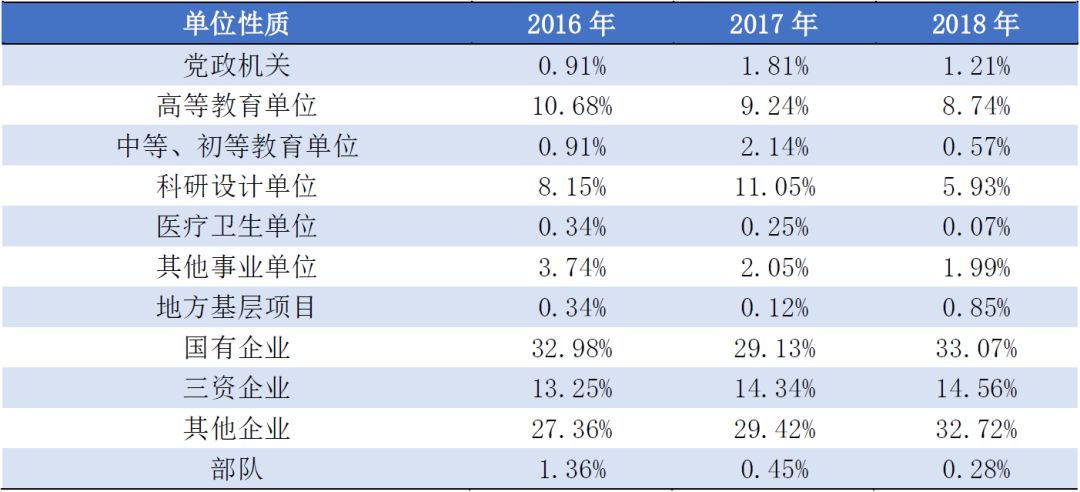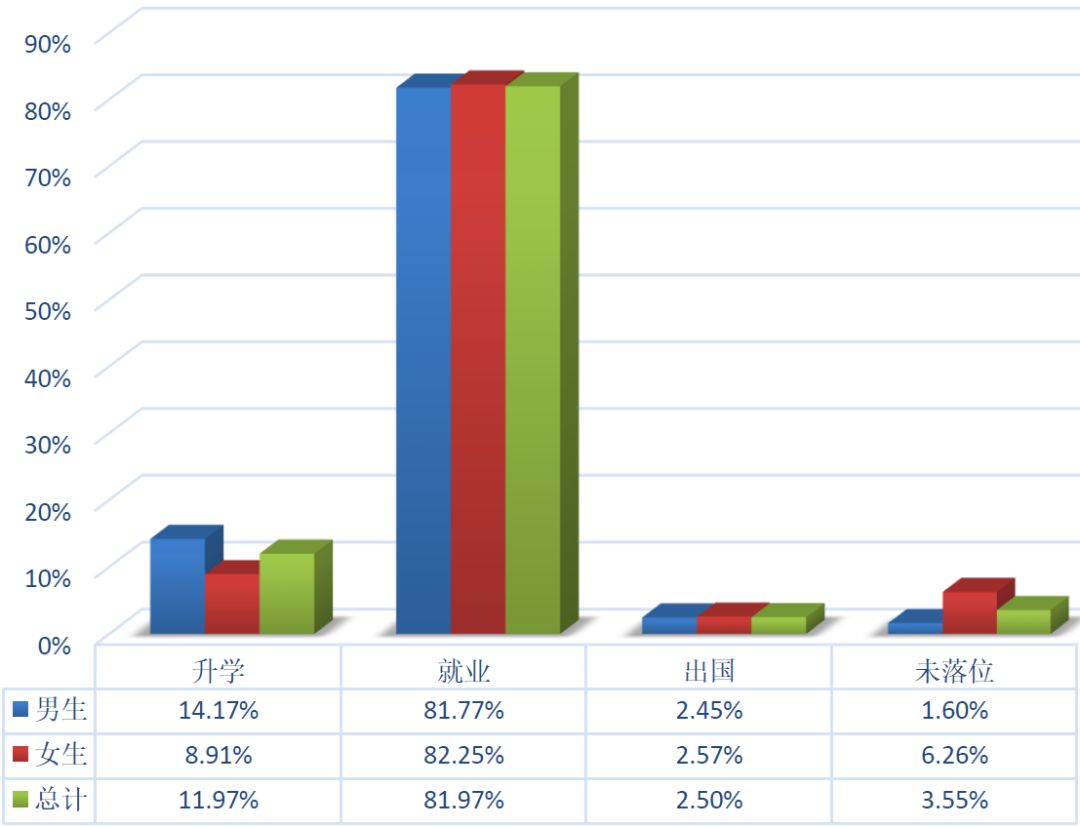 近三年,我校入职毕业生中,约二成研究生进入高校、科研院所等事业单位,九成本科生和七成以上研究生进入各类企业。