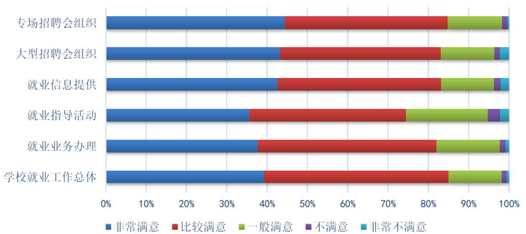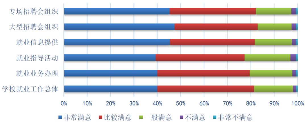 面向进入我校招聘2018届毕业生的用人单位调查显示,98.94%的单位对学校提供的招聘服务表示满意,80.41%的单位认为学校提供的招聘服务与同类高校相比处于领先水平。