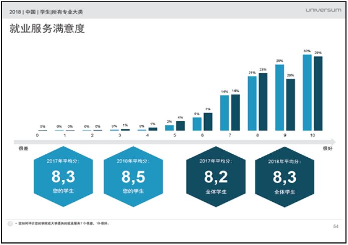 优兴咨询公司针对百所高校2018届毕业生开展调研,报告显示:大连理工大学毕业生对学校满意度为8.4,对学校提供就业服务满意度为8.5,均高于全国高校整体水平。