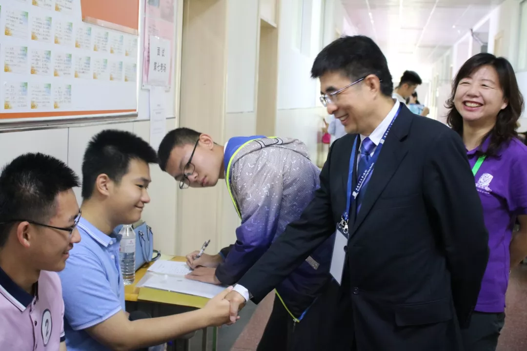 副校长阮健骢先生、协理副校长蔡小强教授巡视考场并给考生加油