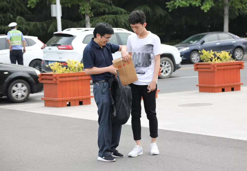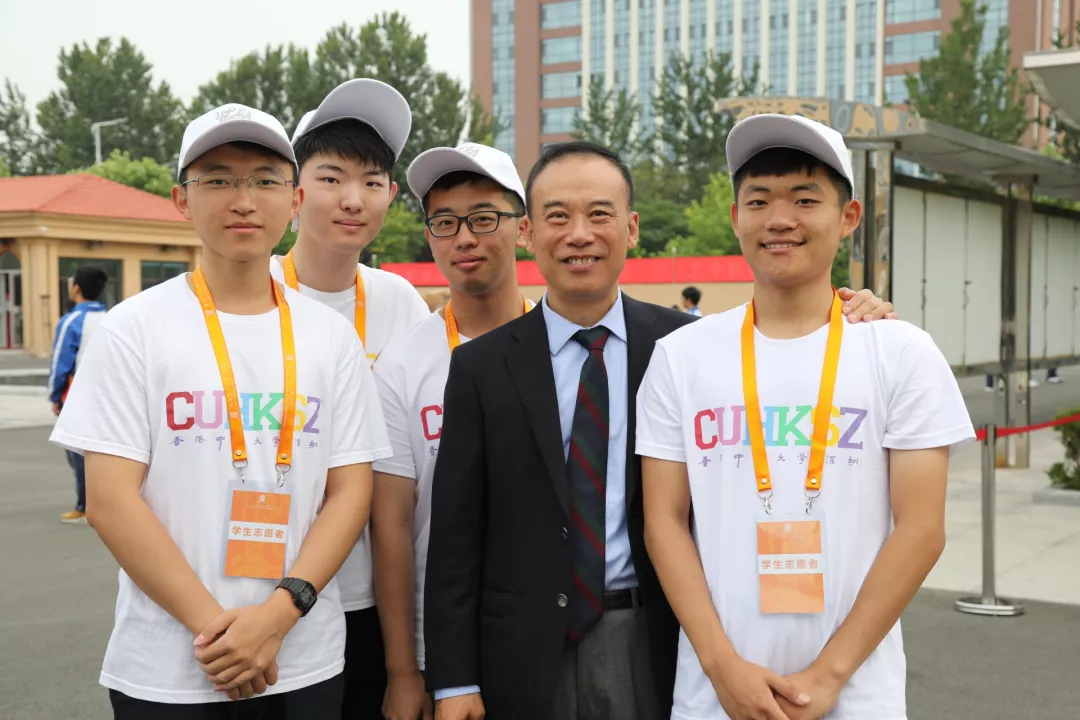 香港中文大学(深圳)校长徐扬生教授在面试考场外鼓励候考考生