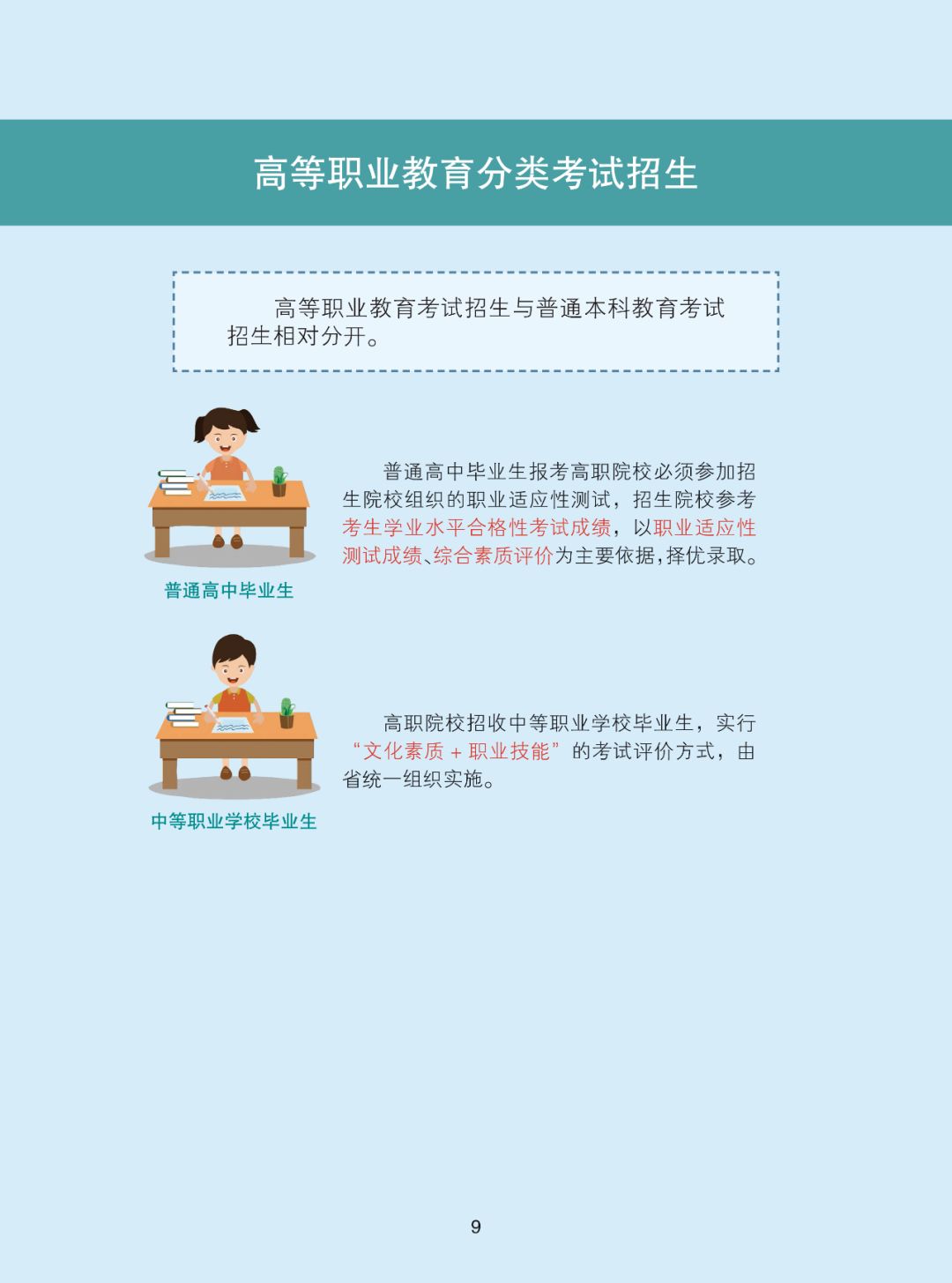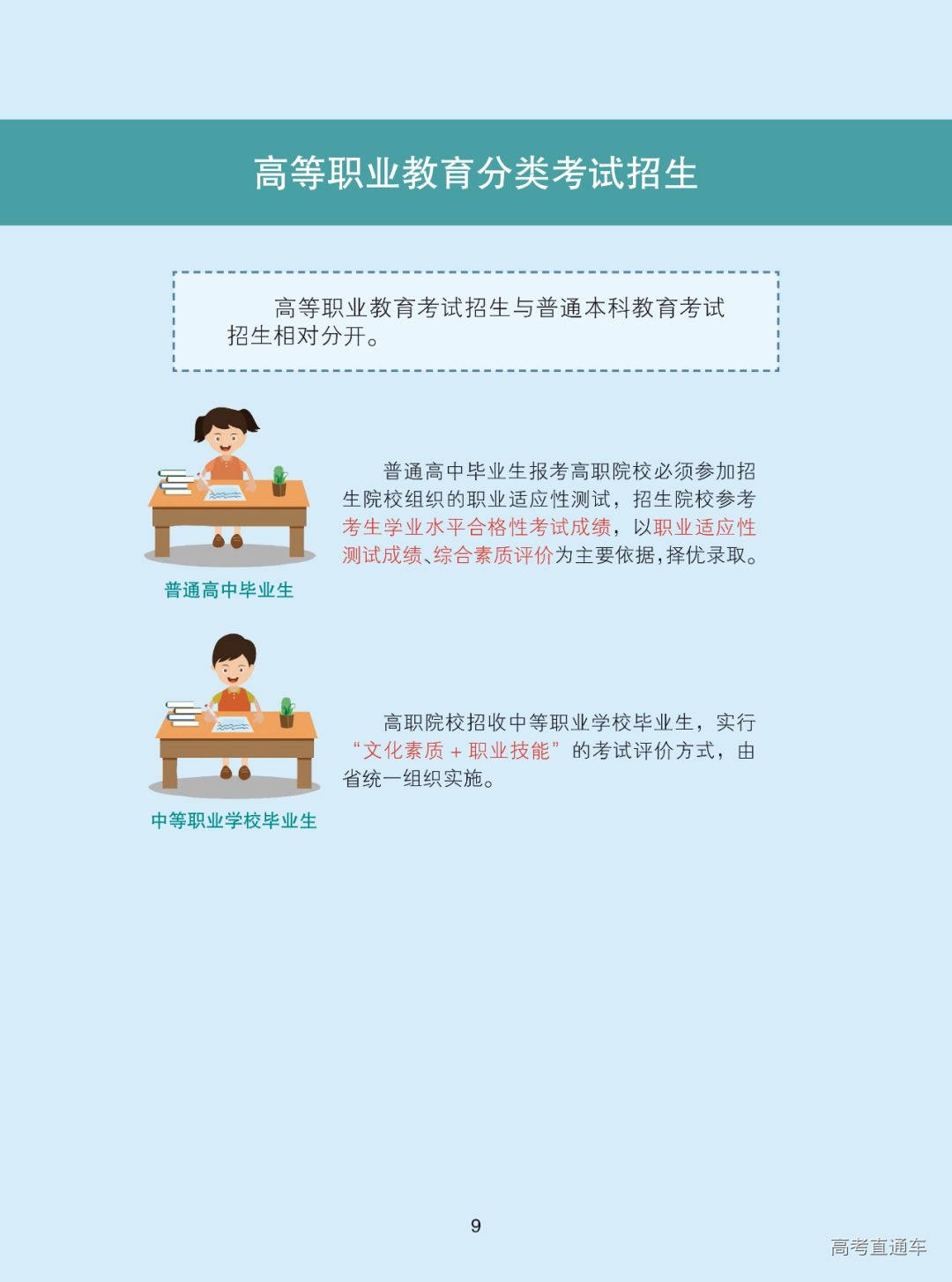 完善高等职业教育分类考试招生办法,将高等职业教育考试招生与普通本科教育考试招生相对分开。