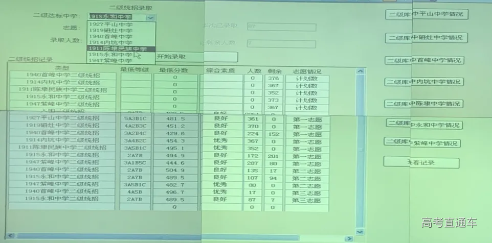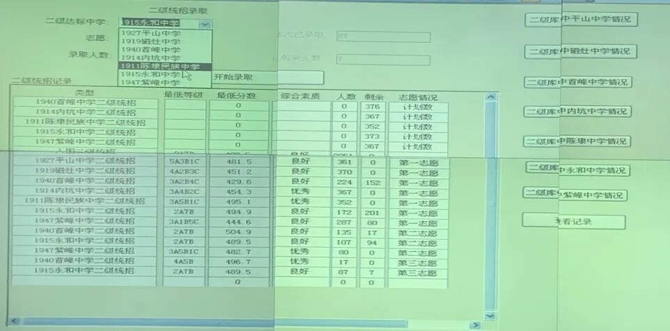 二级达标中学最低控制线: 等级:2A7B 分数:489.5 综合素质:良好 平山中学: 第一志愿:5A3B1C 481.5 良好 磁灶中学: 第一志愿:4A2B3C 451.2 良好 首峰中学: 第一志愿:3A2B4C 429.6 良好 第二志愿:2A7B 504.9 良好 第三志愿:4A5B 496.7 优秀 内坑中学: 第一志愿:3A4B2C 454.3 优秀 陈埭民族中学: 第一志愿:3A5B1C 495.1 优秀 永和中学: 第一志愿:2A7B 494.9 良好 第二志愿:2A7B 489.5 良好 第三志愿:2A7B 489.5 良好 第四志愿:4A5B 501 优秀 紫峰中学: 第一志愿:3A1B5C 444.6良好 第二志愿:3A5B1C 482.7 优秀 统招75人 分数:500.4 统招450人 分数:507.6 统招218人 分数:410.2 统招383人 分数:405 分数:404.9 分数:405.5 分数:406.2 统招100人 分数:408.1 分数:412.7 分数:409.5 分数:419.3