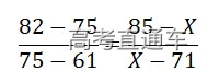 第一步,将该科目所有考生原始分从高到低进行排序,按照规定的等级比例该考生被划定为B等级,该科目B等级原始分区间为61-82(仅是示例,实际各科目各等级原始分区间不固定),即Y1、Y2分别为61和82;