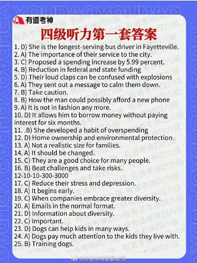 相关链接:2024年12月全国大学英语四六级真题及参考答案汇总