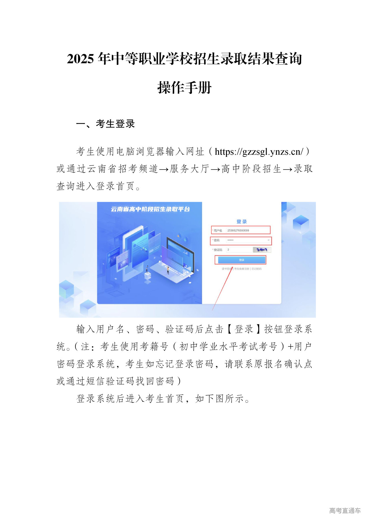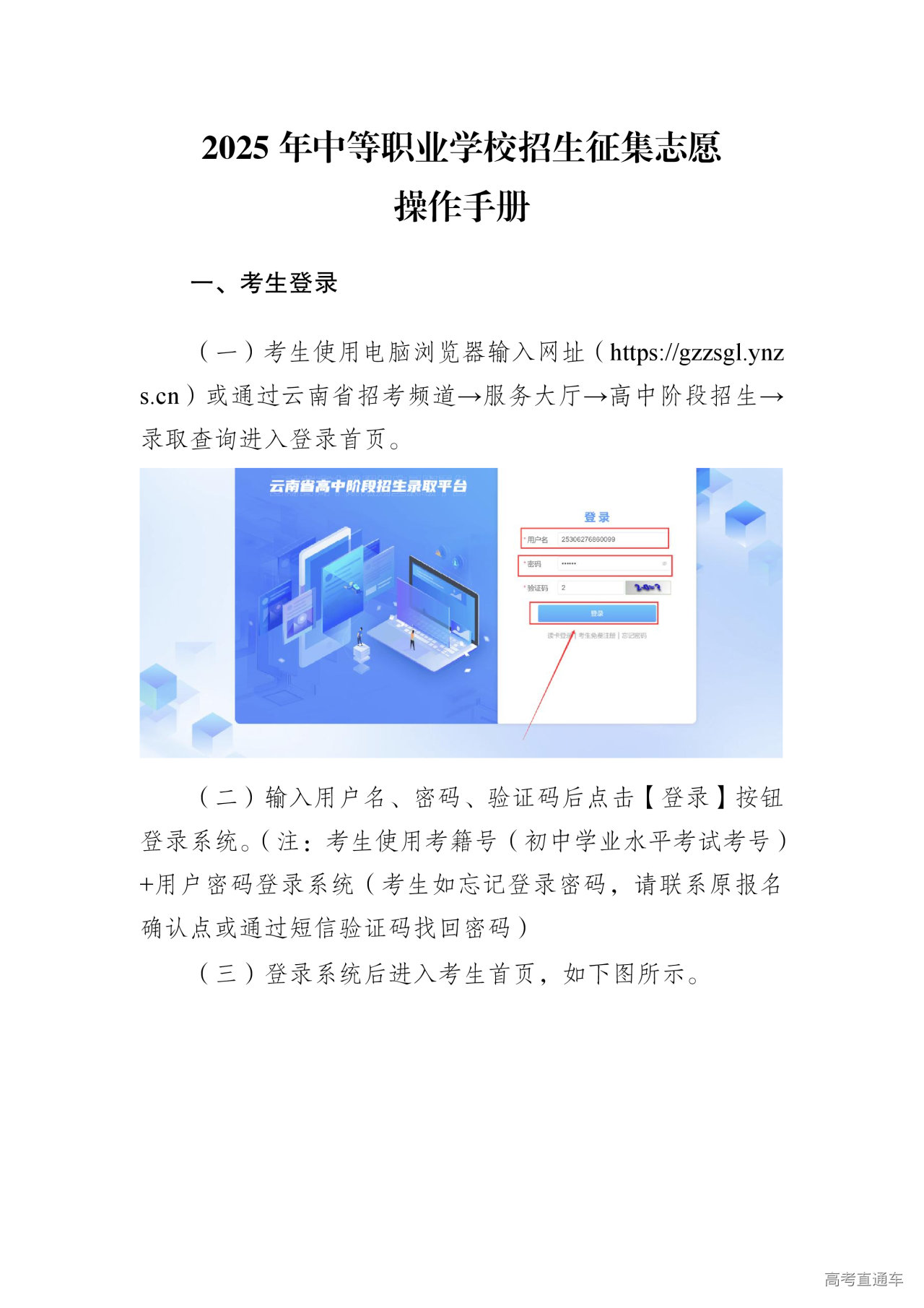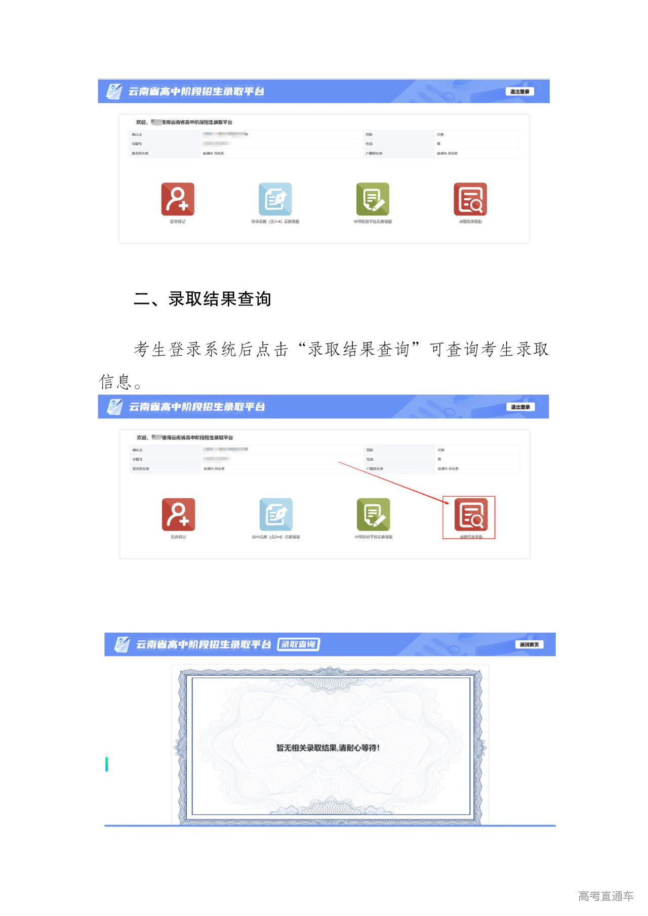 (二)所有考生均须通过“云南省高中阶段招生录取平台”填报志愿、投档录取,录取结果查询以录取系统信息为准。