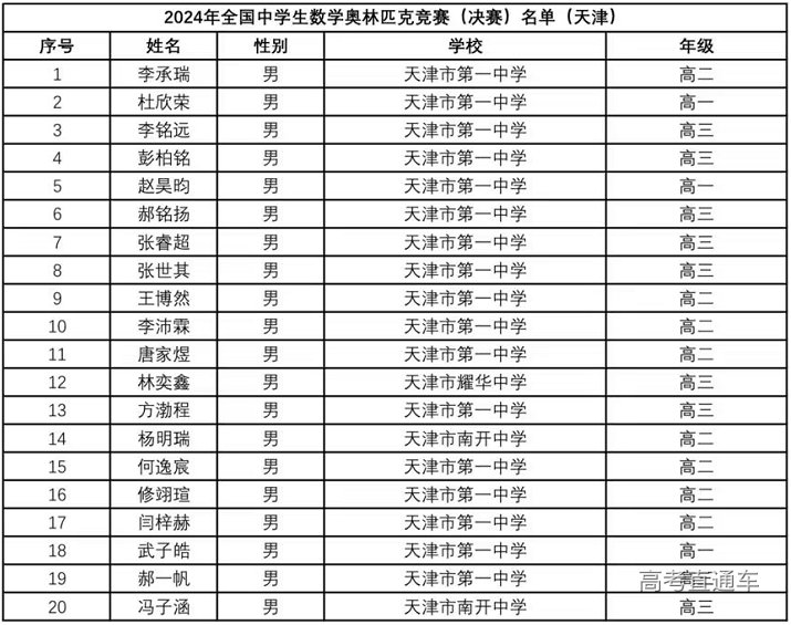 2024年第40届全国中学生数学联赛省队名单(天津)