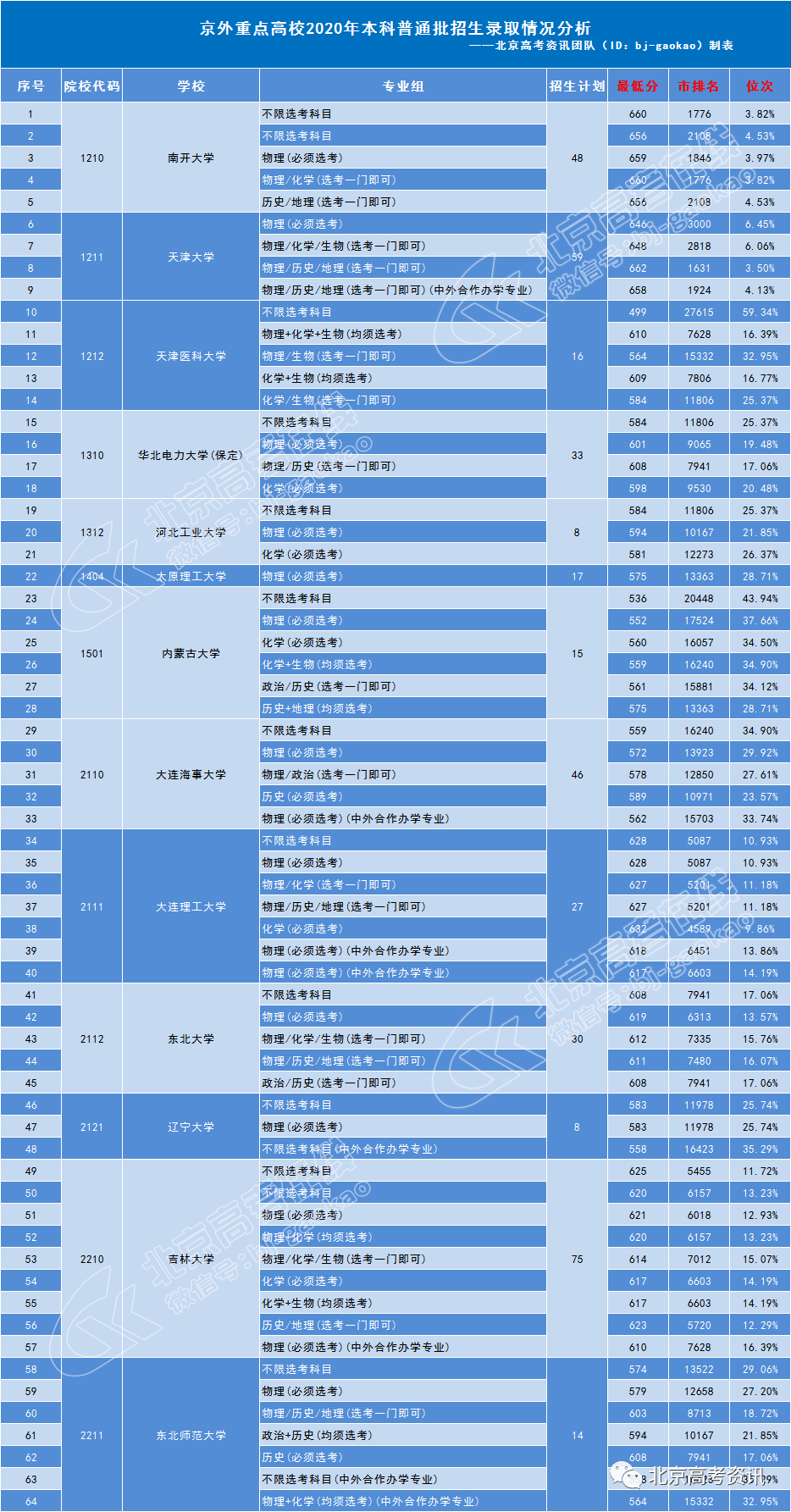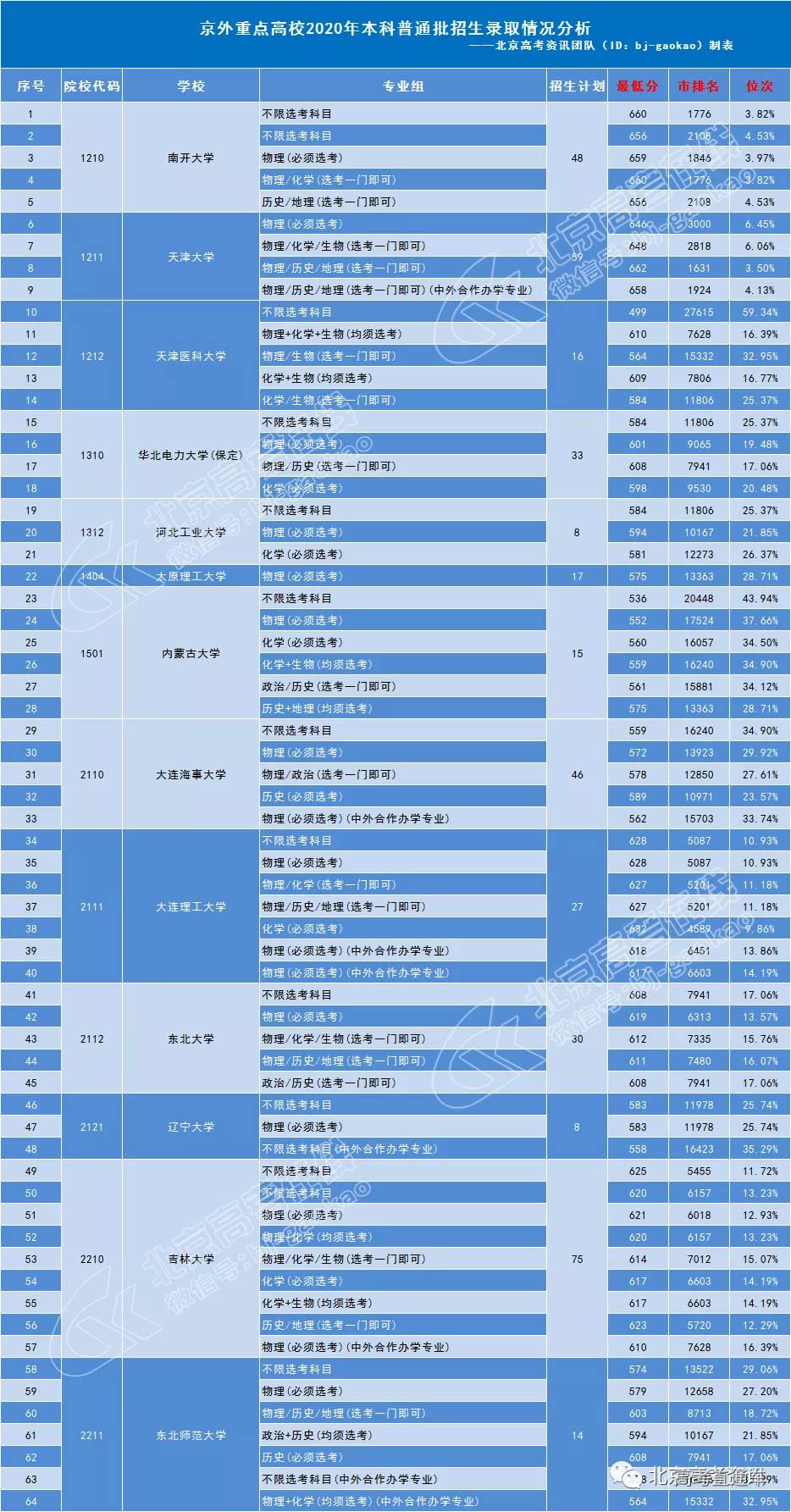 1、上表为京外211高校2020年在京本科普通批次录取数据。由于北京高校录取数据上周已经进行了分享,因此本表格未进行整理,点击下方链接可以查看。