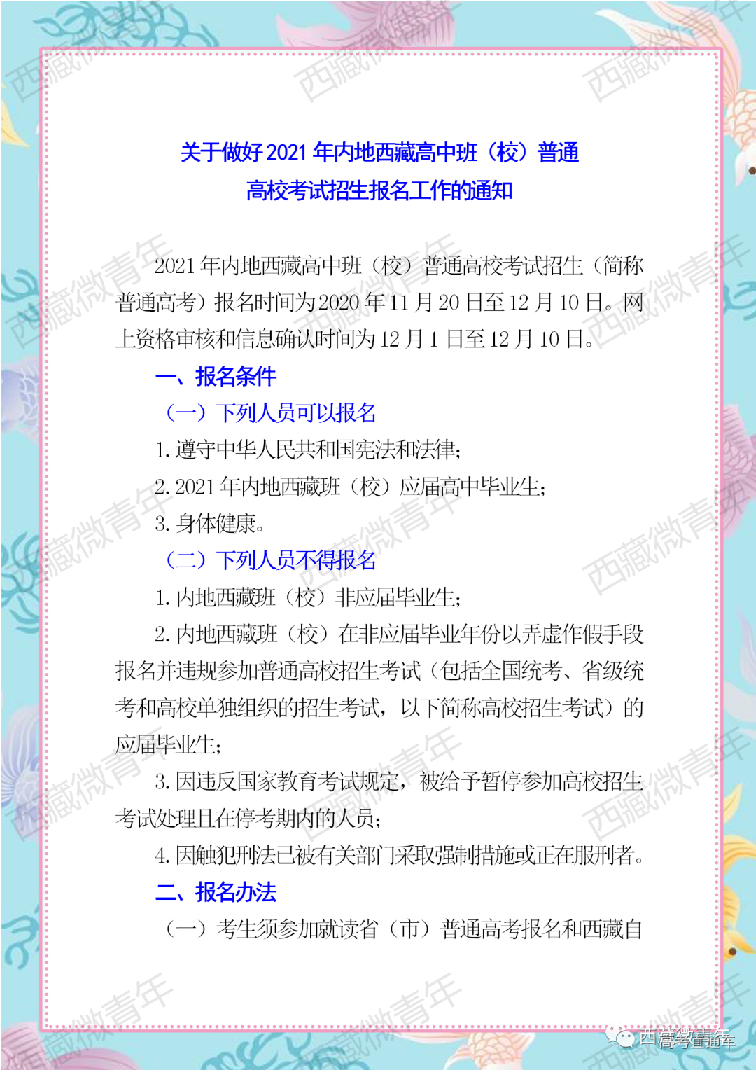 11月20日!2021年高考内地西藏高中(班)校开始报名啦!