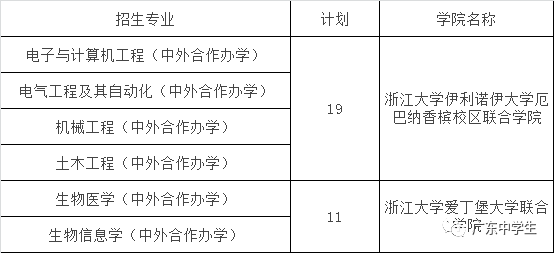 注1:浙江大学伊利诺伊大学厄巴纳香槟校区联合学院招生的4个专业共用19个招生计划,浙江大学爱丁堡大学联合学院招生的2个专业共用11个招生计划。