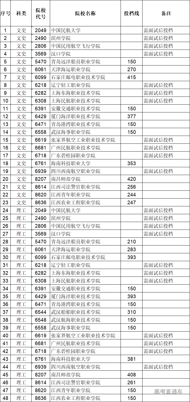 (一)直招士官平行志愿投档后,投档分数居前的院校为: