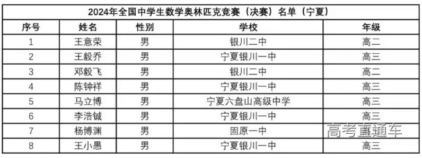 2024年第40届全国中学生数学联赛省队名单(宁夏)