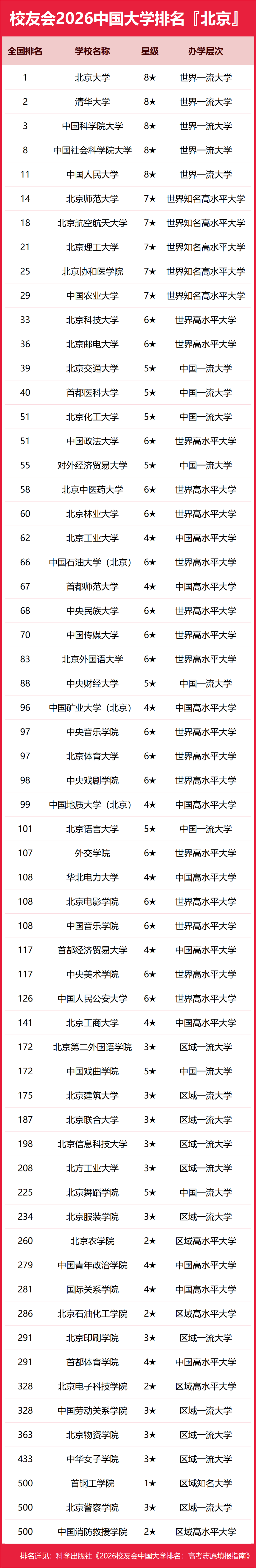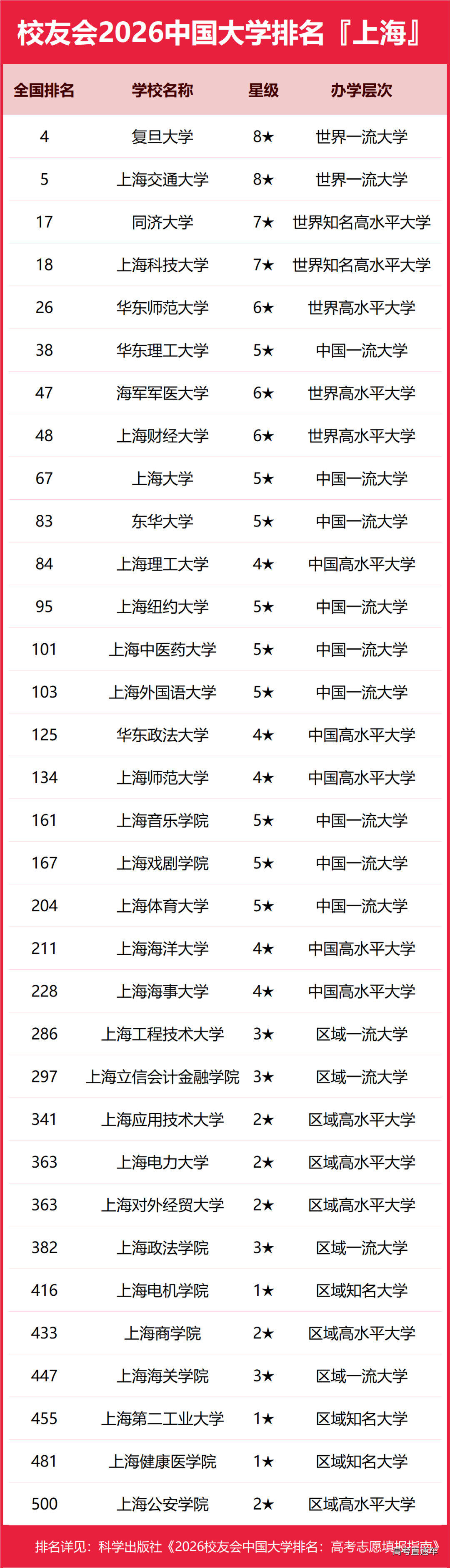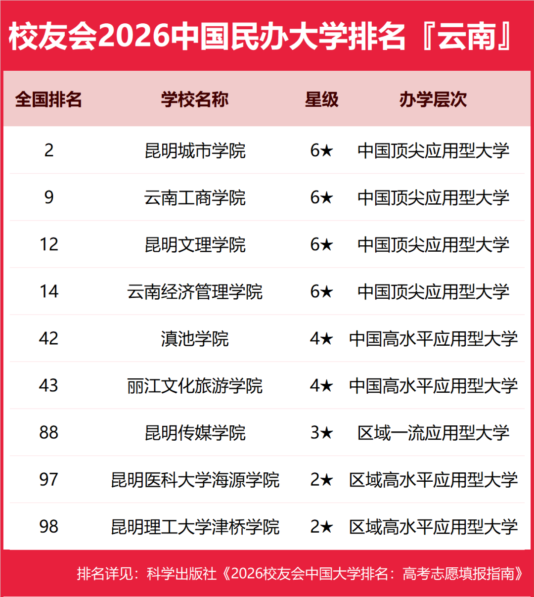 为了给2026年全国考生和家长提供志愿填报参考指南,2026年1月12日,全国第三方大学评价机构艾瑞深校友会网(Cuaa.net)撰写完成、科学出版社即将出版的《2026校友会中国大学排名:高考志愿填报指南》最新发布校友会2026中国各地区大学排名、2026中国各地区民办大学排名、2026中国各地区职业技术大学排名和2026中国各地区高职院校排名。