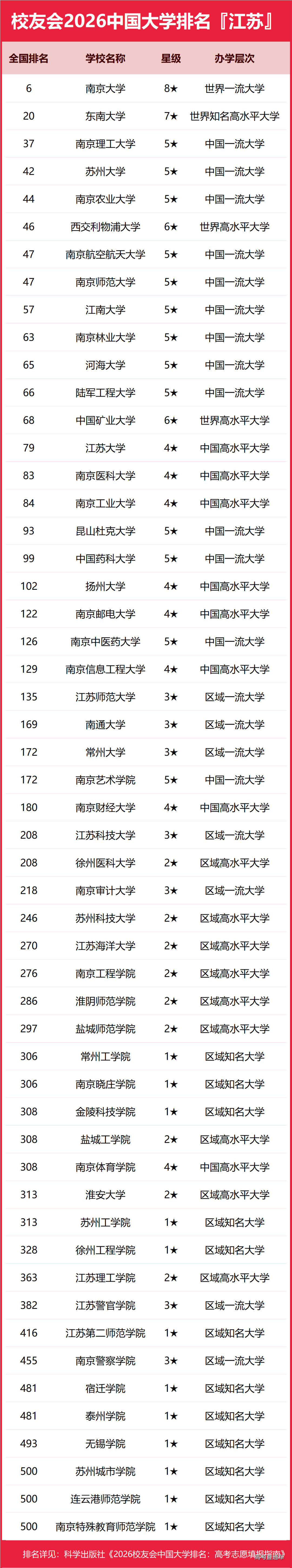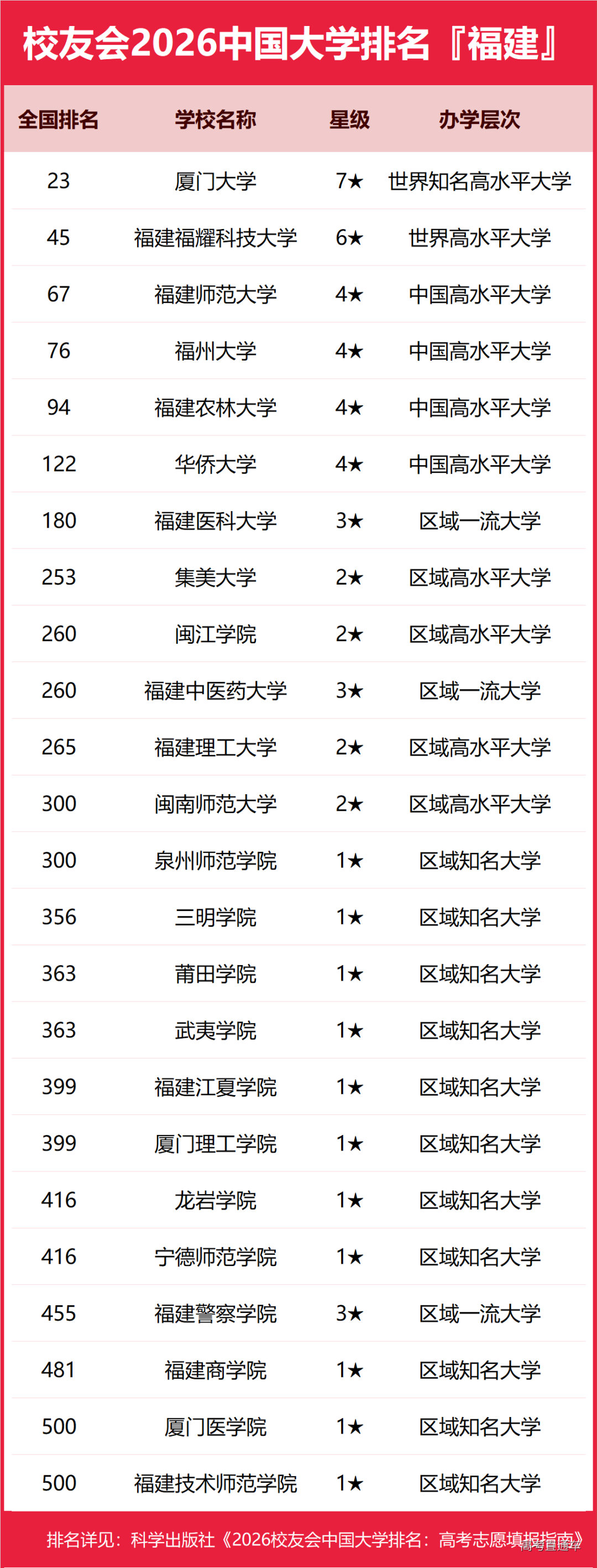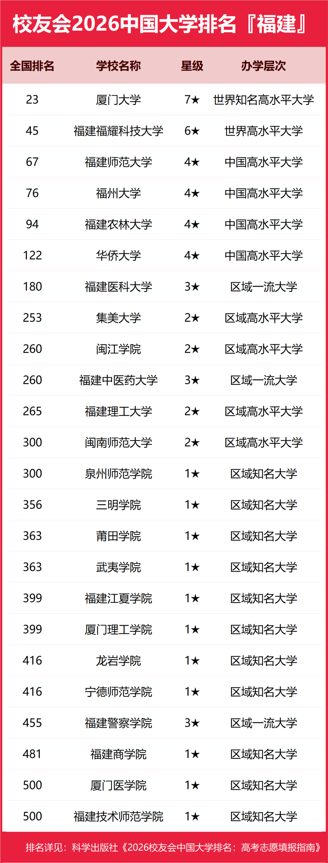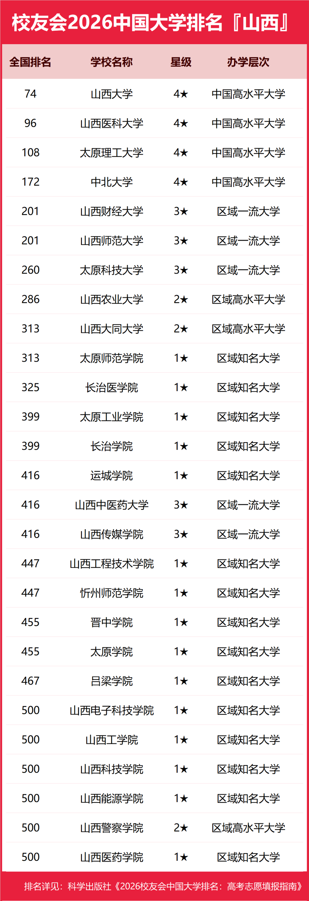 为了给2026年全国考生和家长提供志愿填报参考指南,2026年1月12日,全国第三方大学评价机构艾瑞深校友会网(Cuaa.net)撰写完成、科学出版社即将出版的《2026校友会中国大学排名:高考志愿填报指南》最新发布校友会2026中国各地区大学排名、2026中国各地区民办大学排名、2026中国各地区职业技术大学排名和2026中国各地区高职院校排名。
