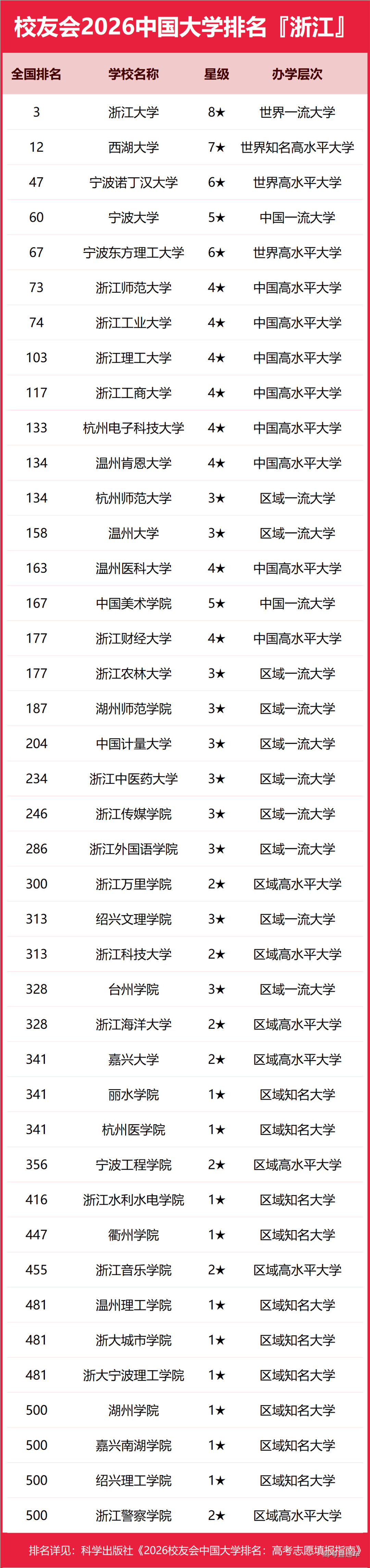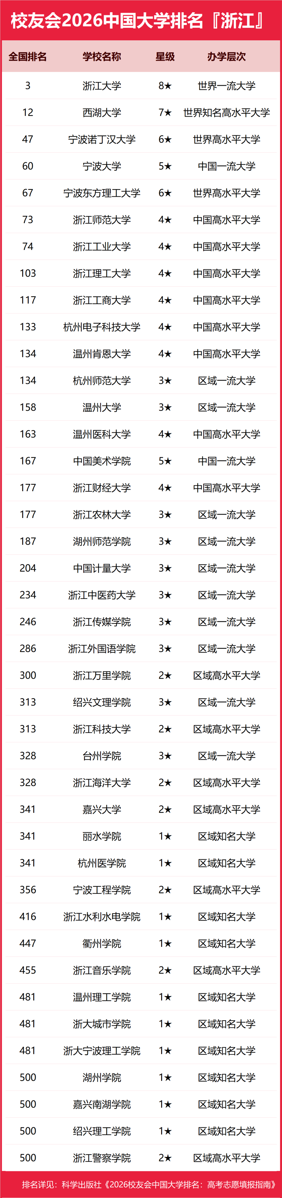 浙江大学问鼎校友会2026浙江省大学排名首位