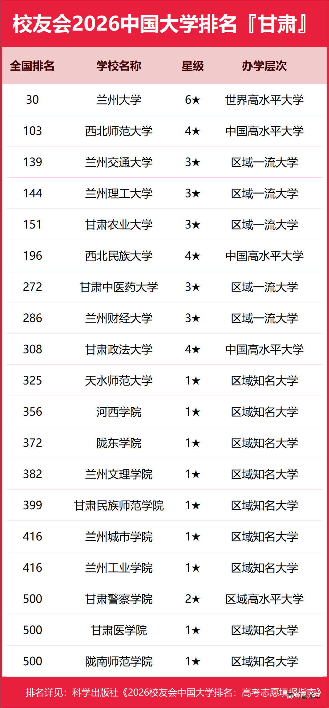 兰州大学问鼎校友会2026甘肃省大学排名首位