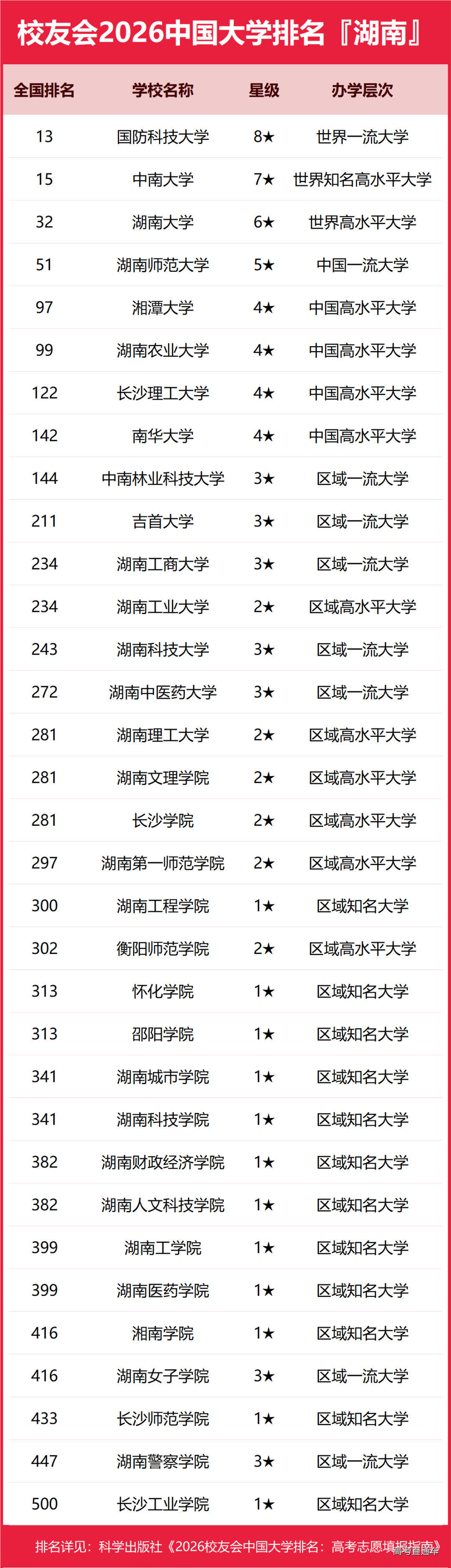 国防科技大学问鼎校友会2026湖南省大学排名首位