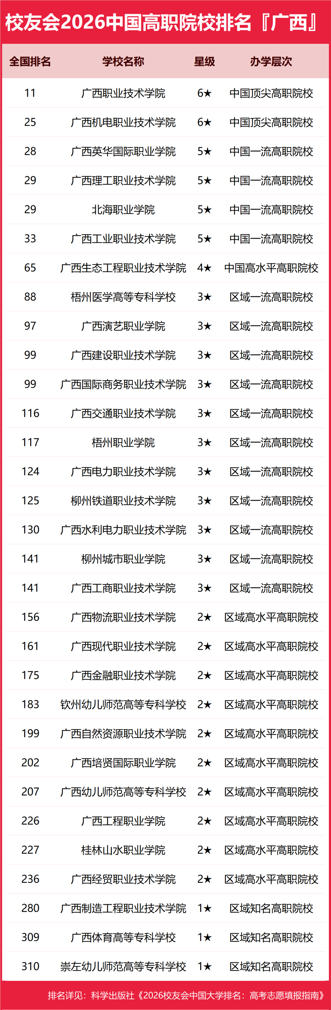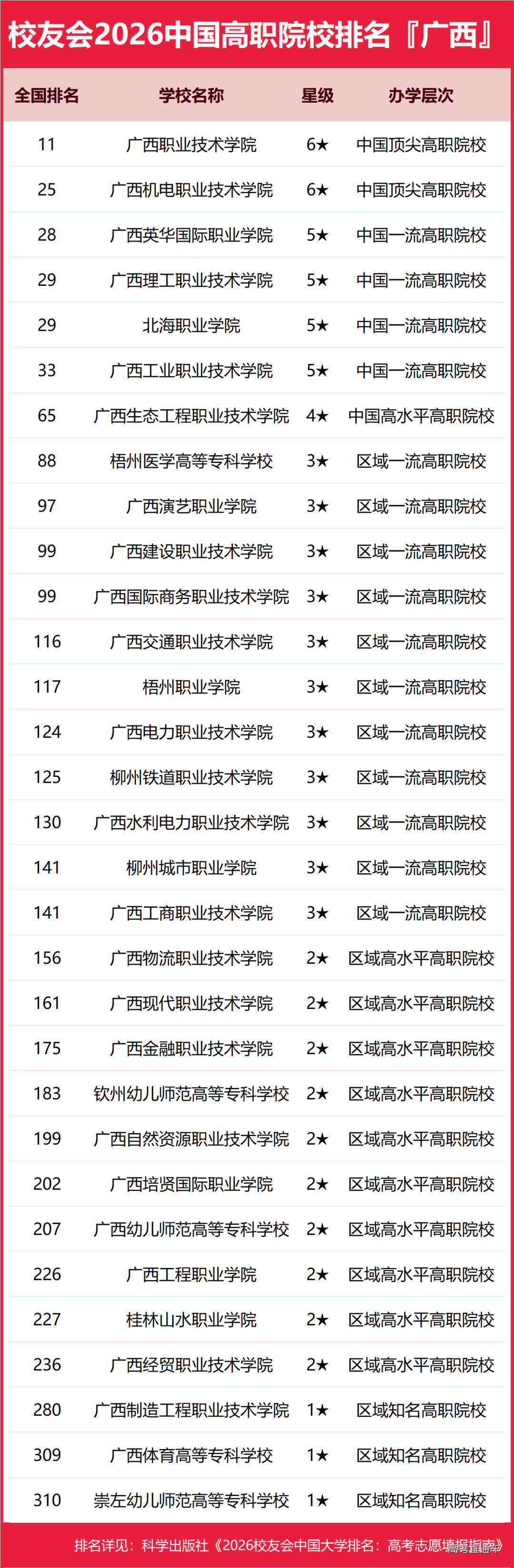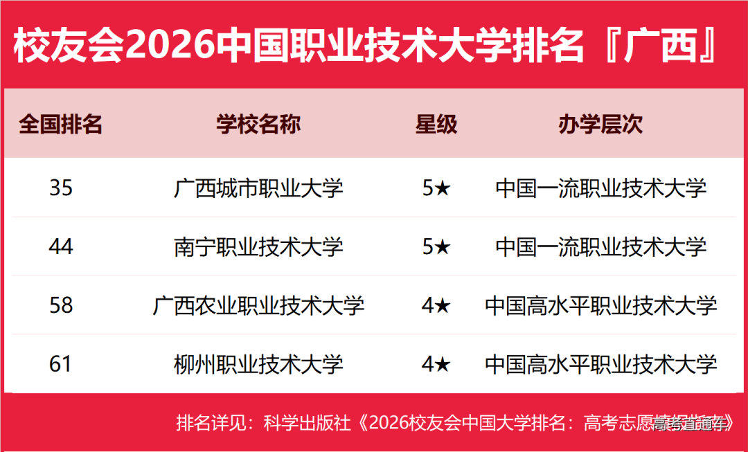 广西城市职业大学位居2026广西壮族自治区职业技术大学排名榜首