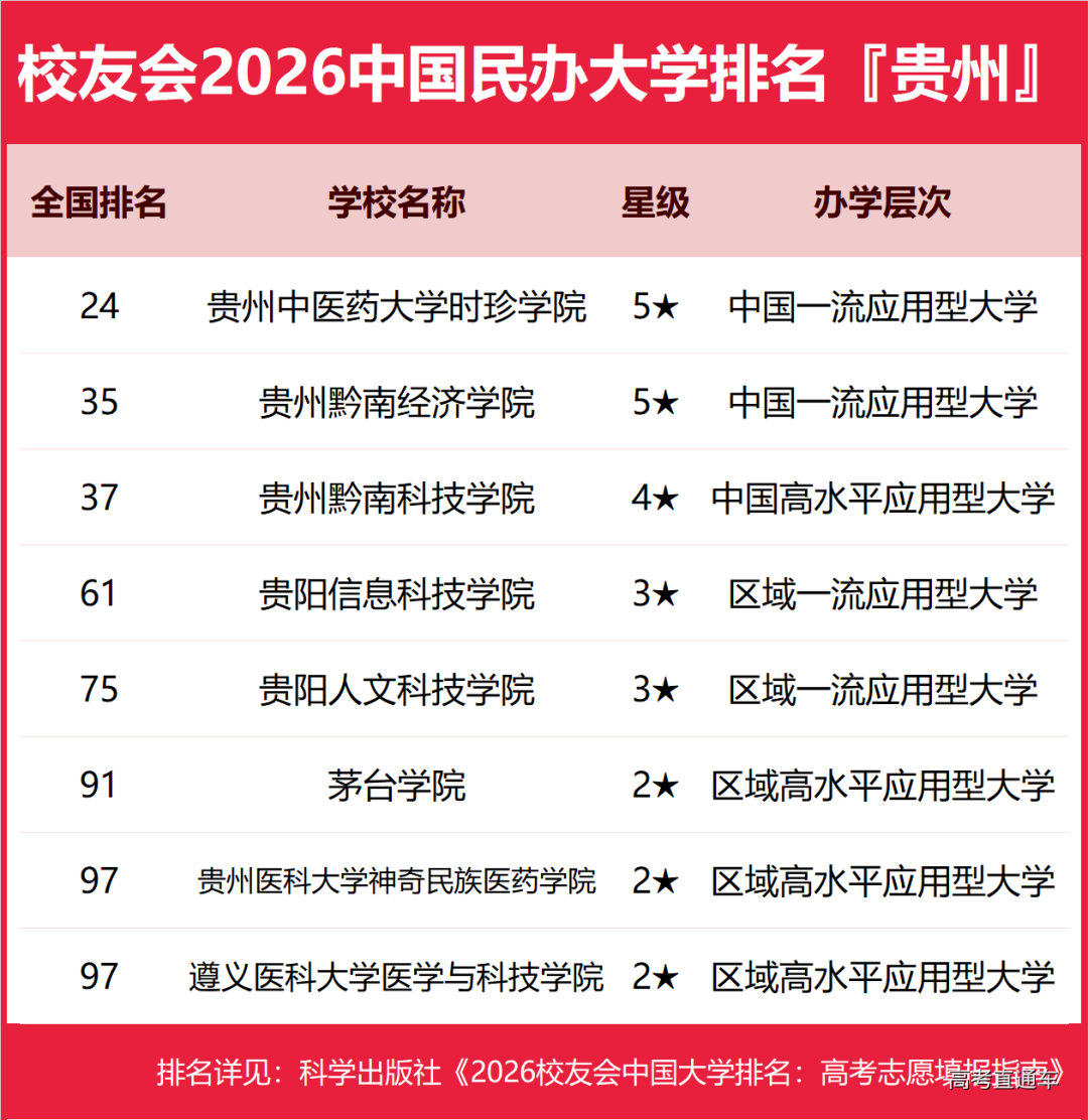 贵州中医药大学时珍学院位列2026贵州省民办大学排名第一