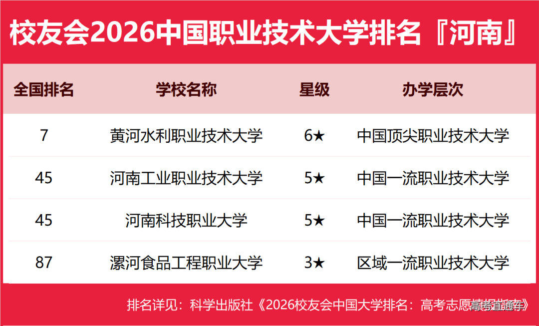 黄河水利职业技术大学位居2026河南省职业技术大学排名榜首