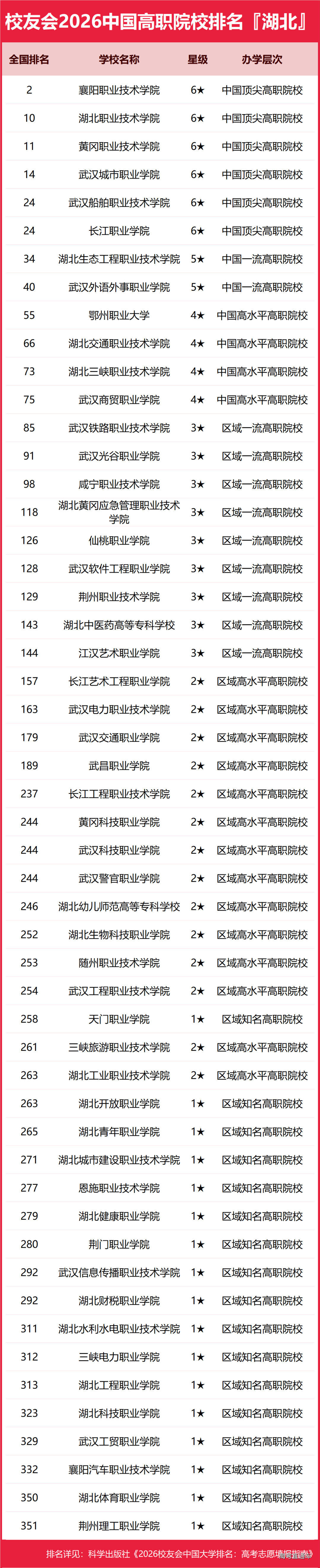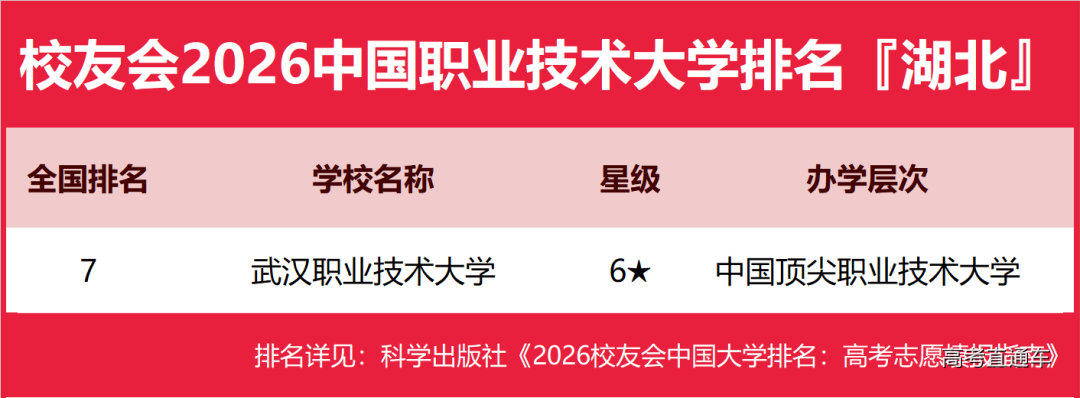 武汉职业技术大学位居2026湖北省职业技术大学排名榜首