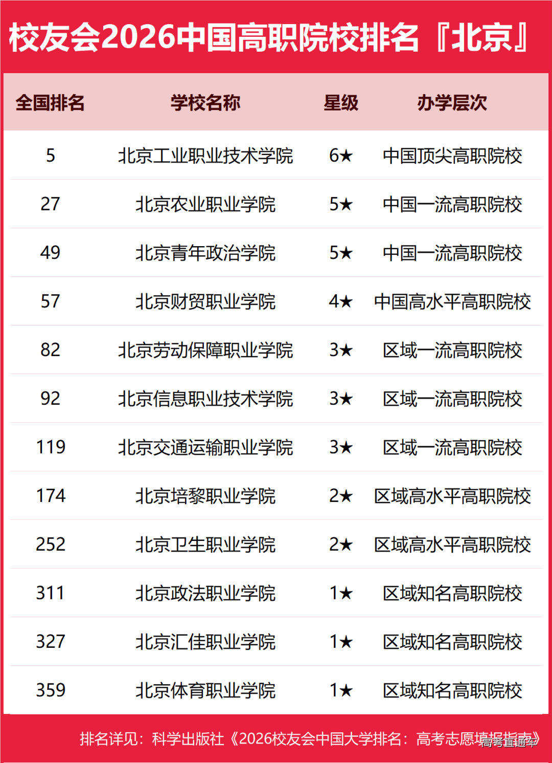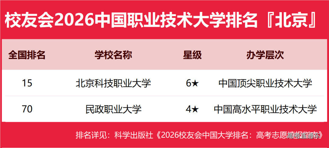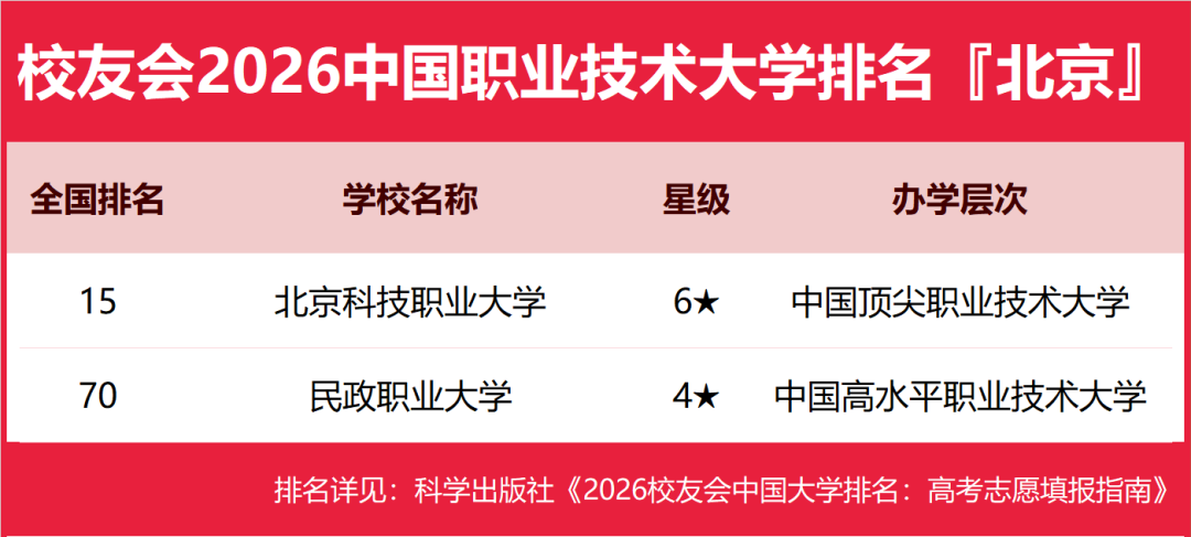北京科技职业大学位居2026北京市职业技术大学排名榜首