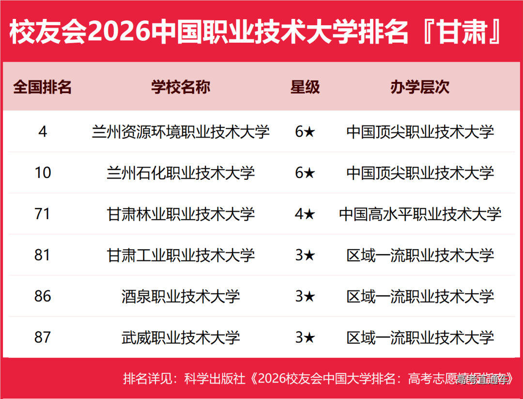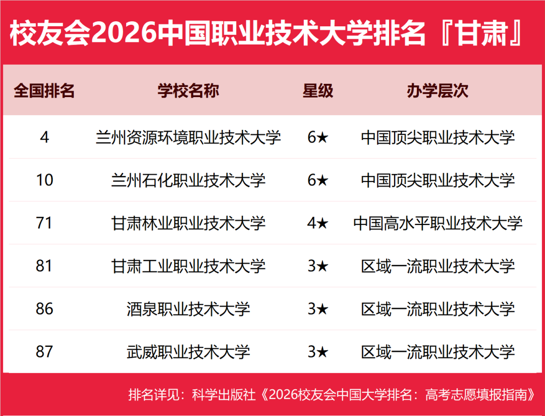 兰州资源环境职业技术大学位居2026甘肃省职业技术大学排名榜首