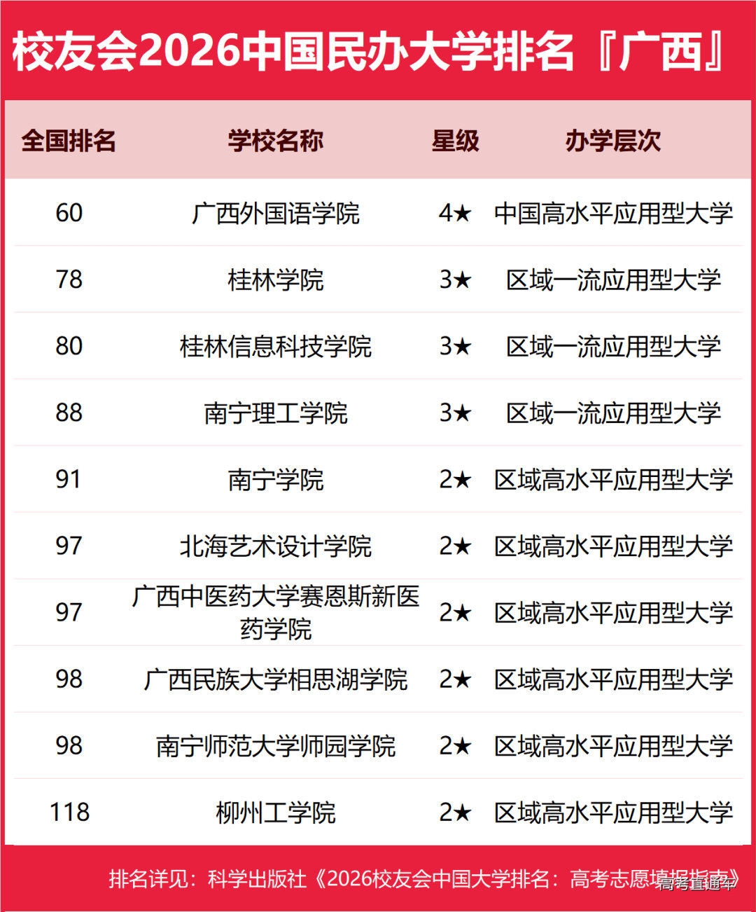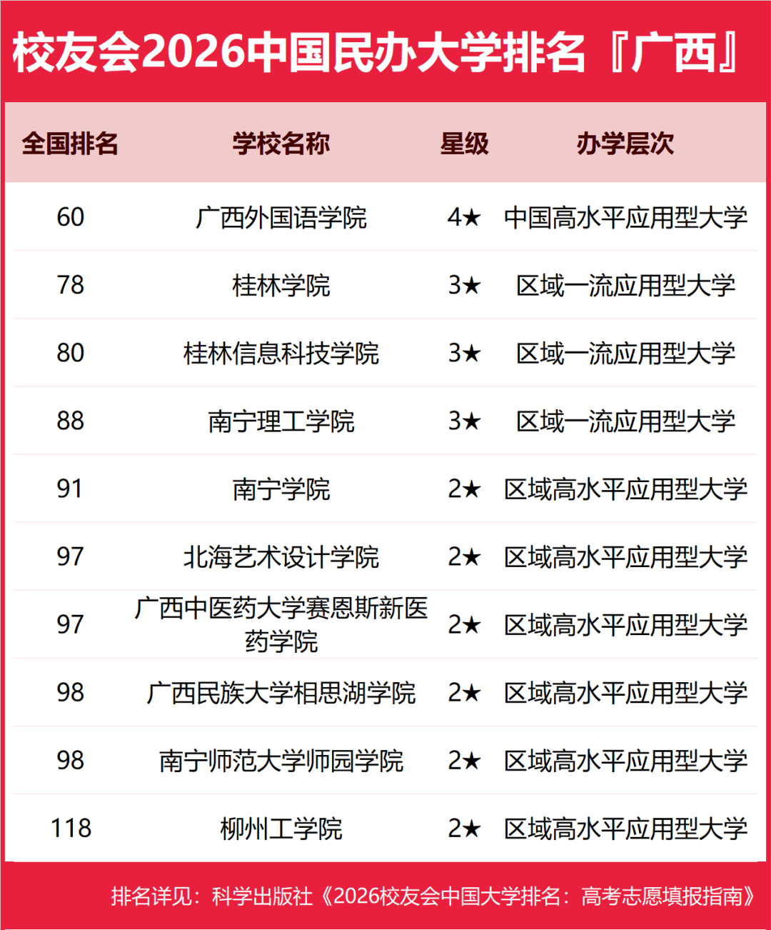 广西外国语学院位列2026广西壮族自治区民办大学排名第一