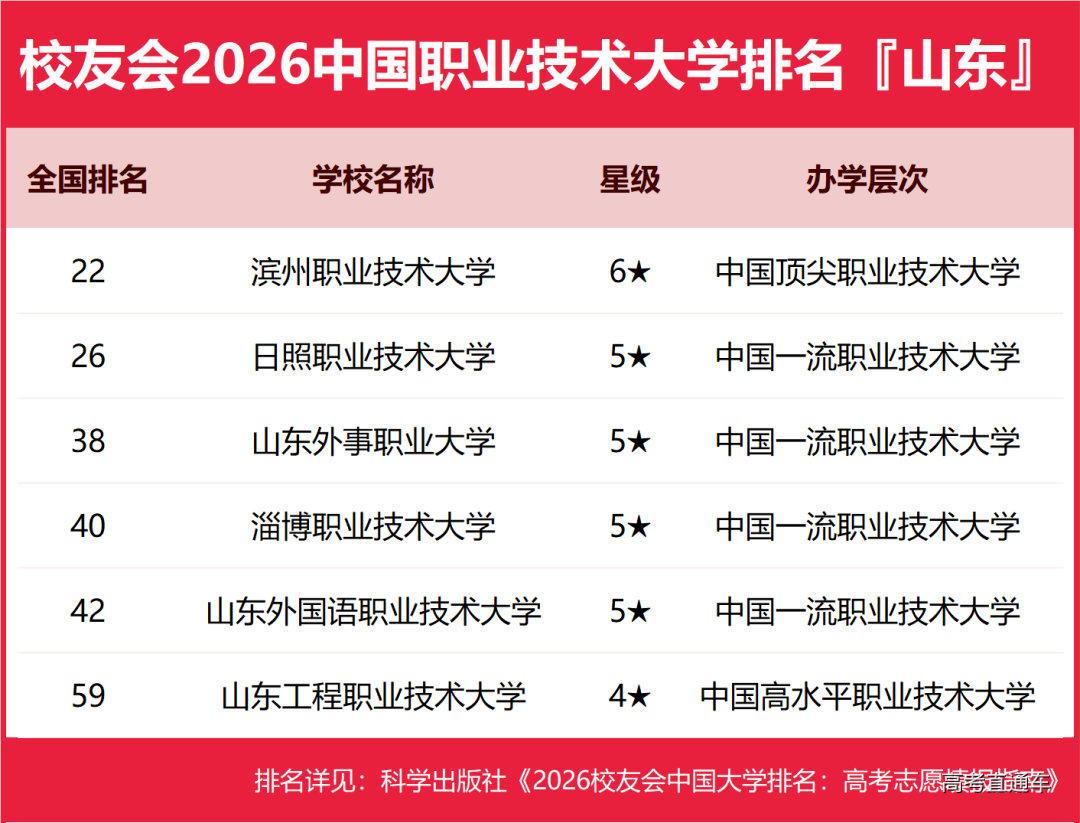 滨州职业技术大学位居2026山东省职业技术大学排名榜首