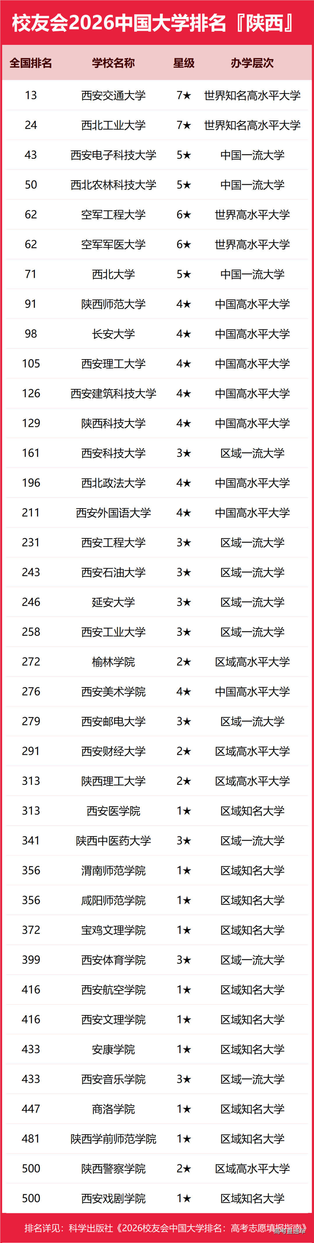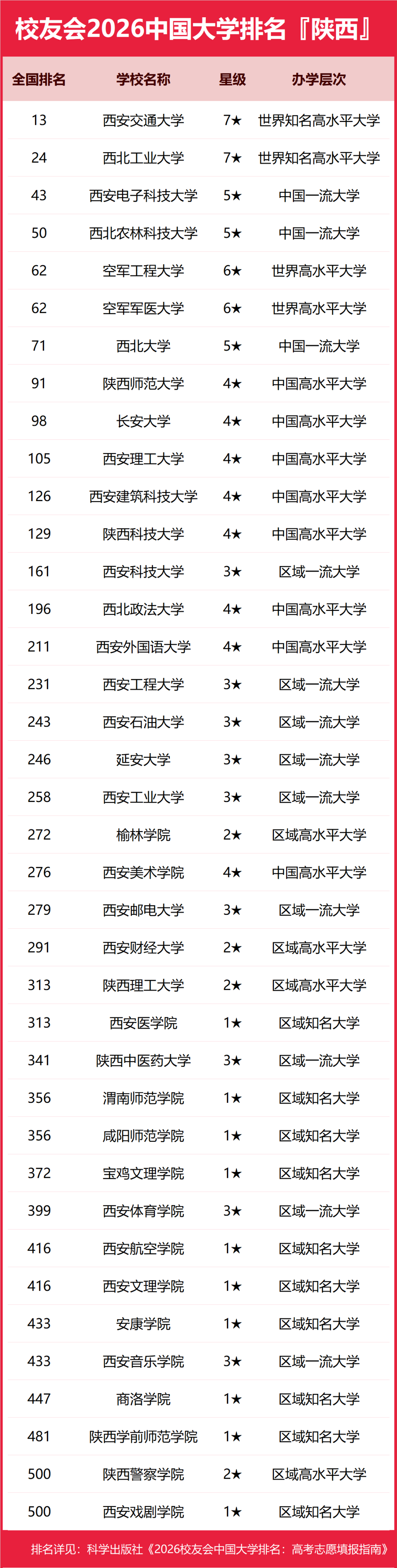 西安交通大学问鼎校友会2026陕西省大学排名首位