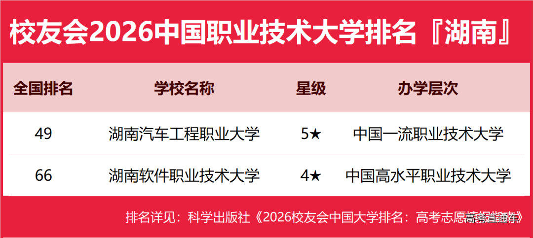 湖南汽车工程职业大学位居2026湖南省职业技术大学排名榜首