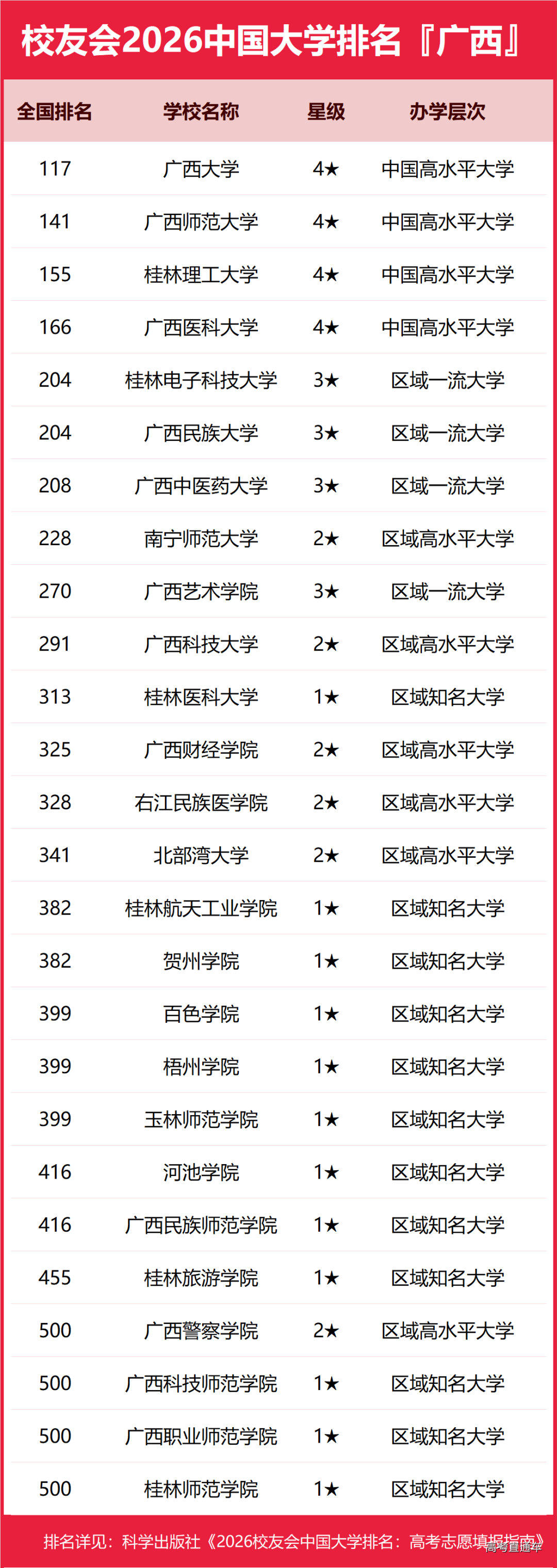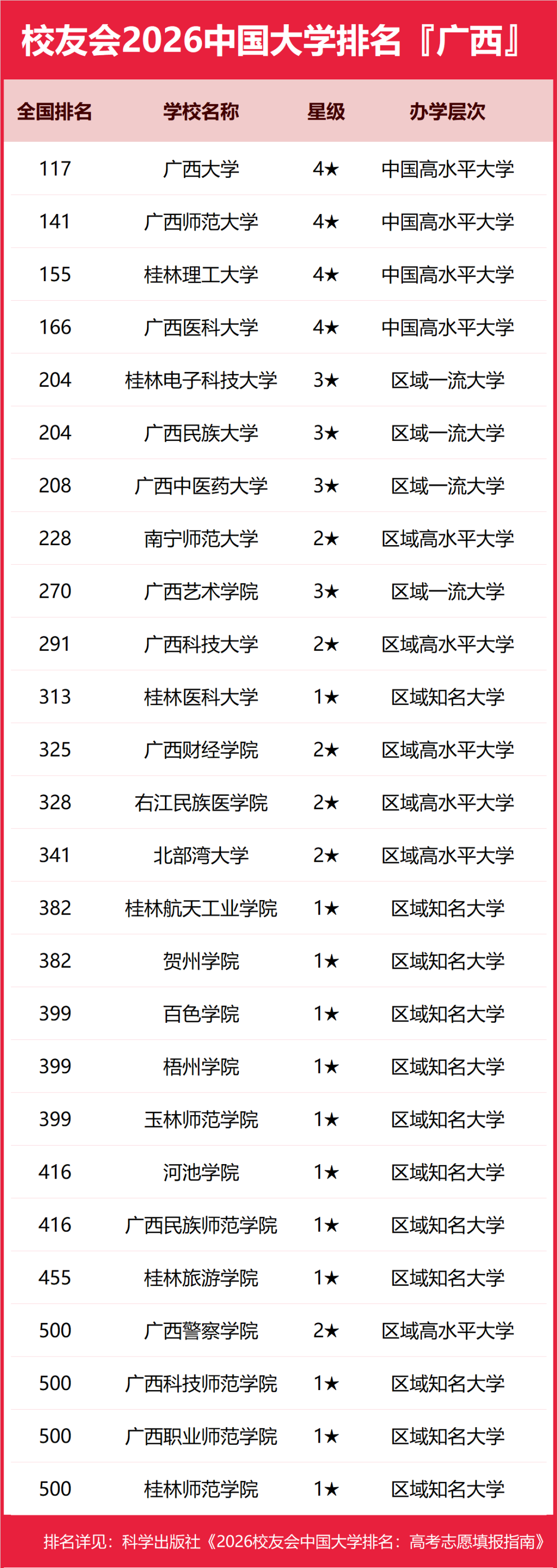 广西大学问鼎校友会2026广西壮族自治区大学排名首位
