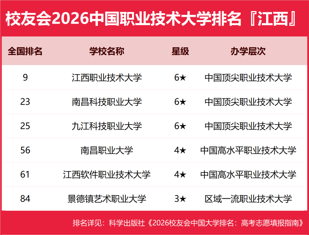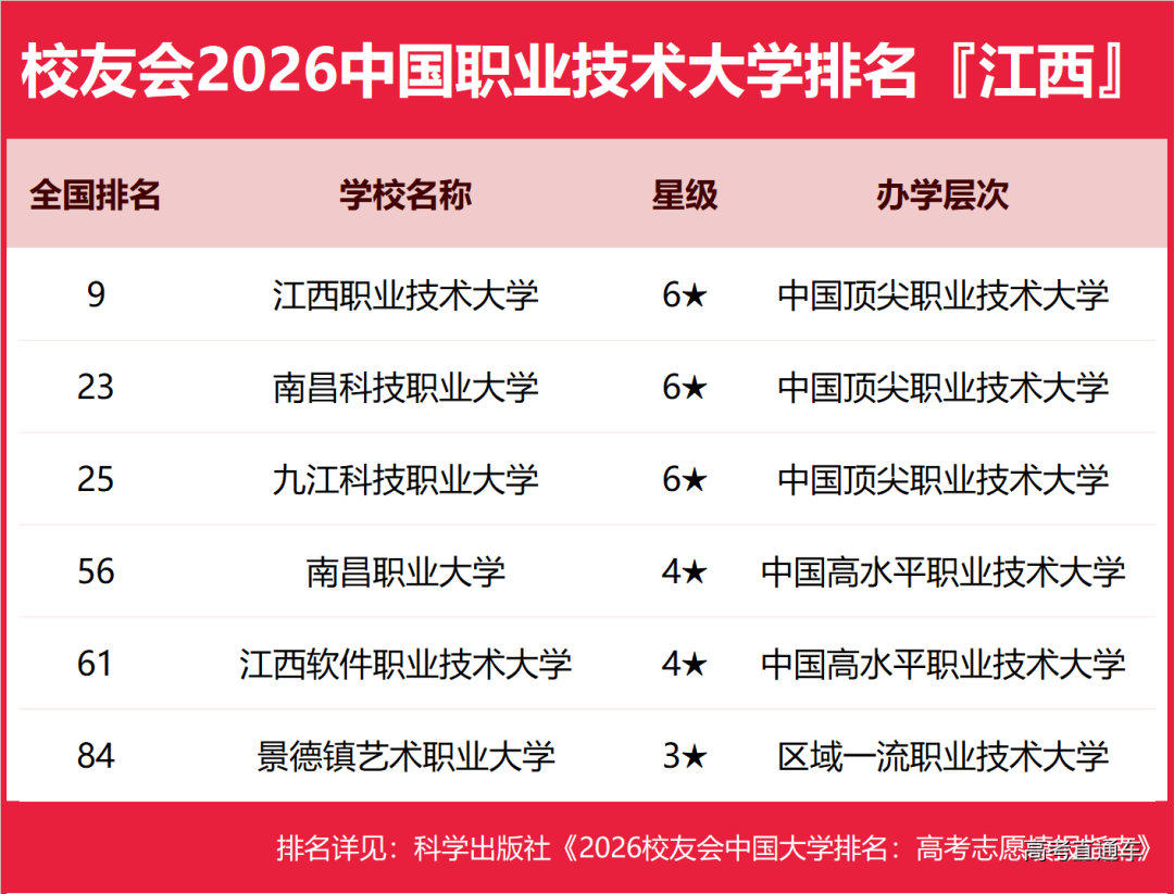 江西职业技术大学位居2026江西省职业技术大学排名榜首
