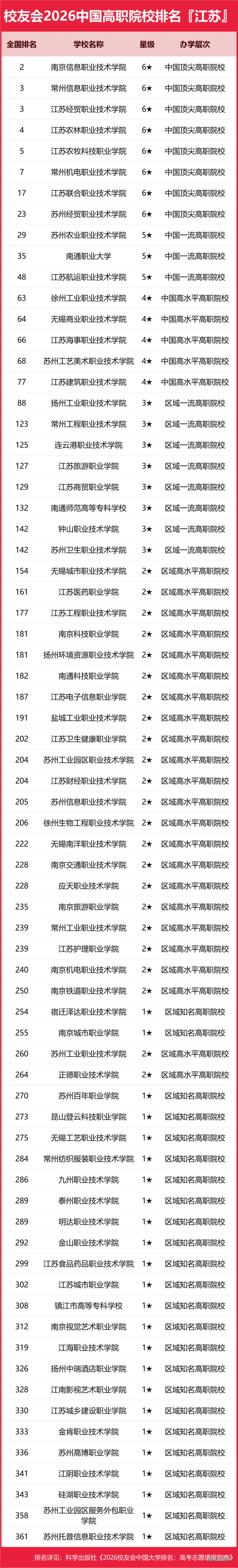 南京信息职业技术学院问鼎2026江苏省高职院校排名冠军