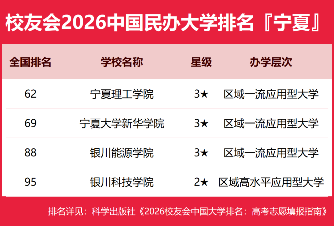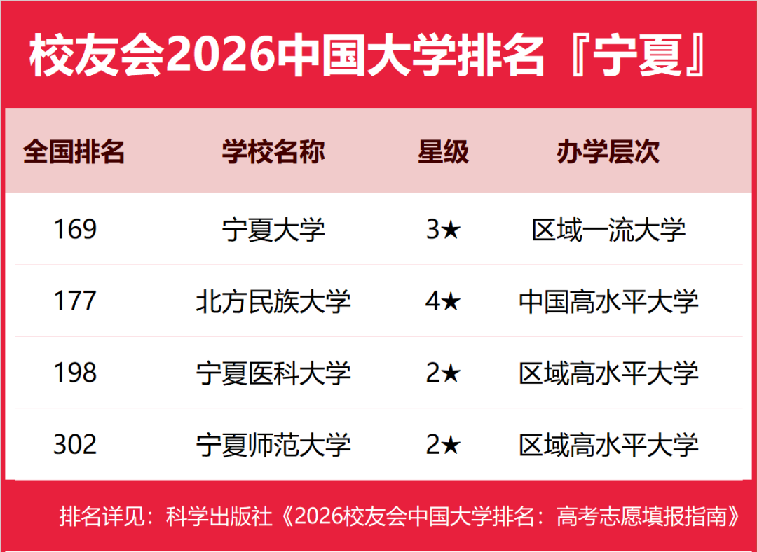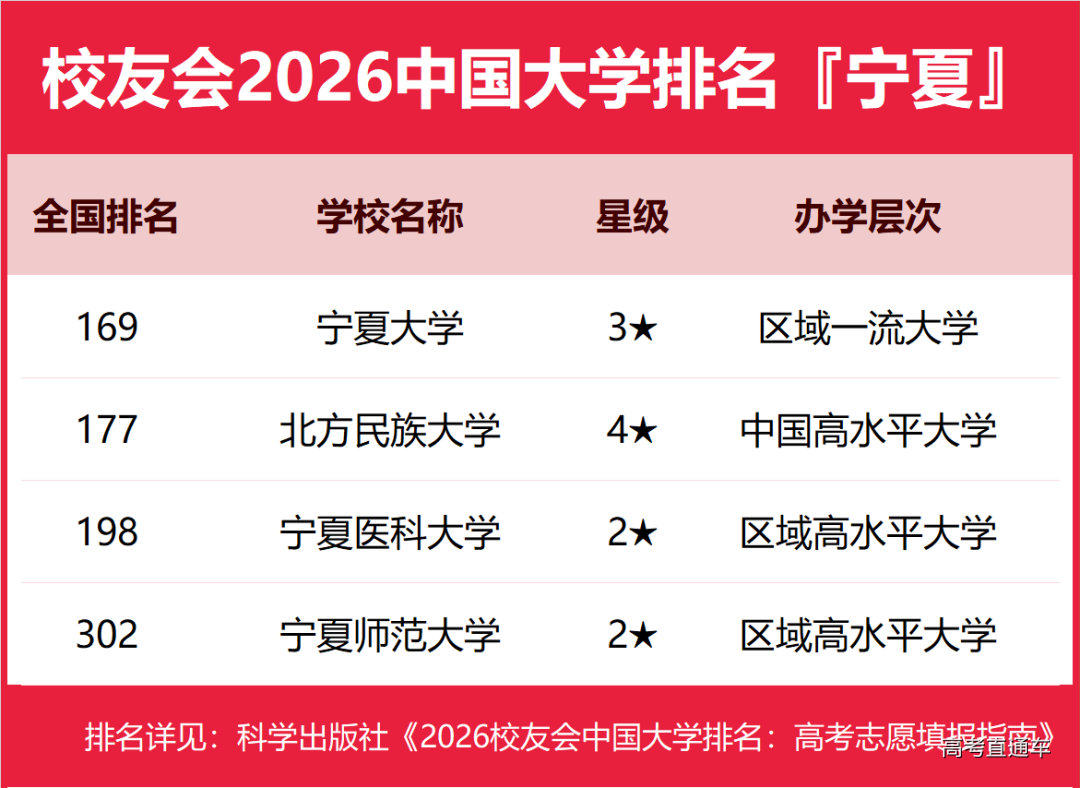 宁夏大学问鼎校友会2026宁夏回族自治区大学排名首位